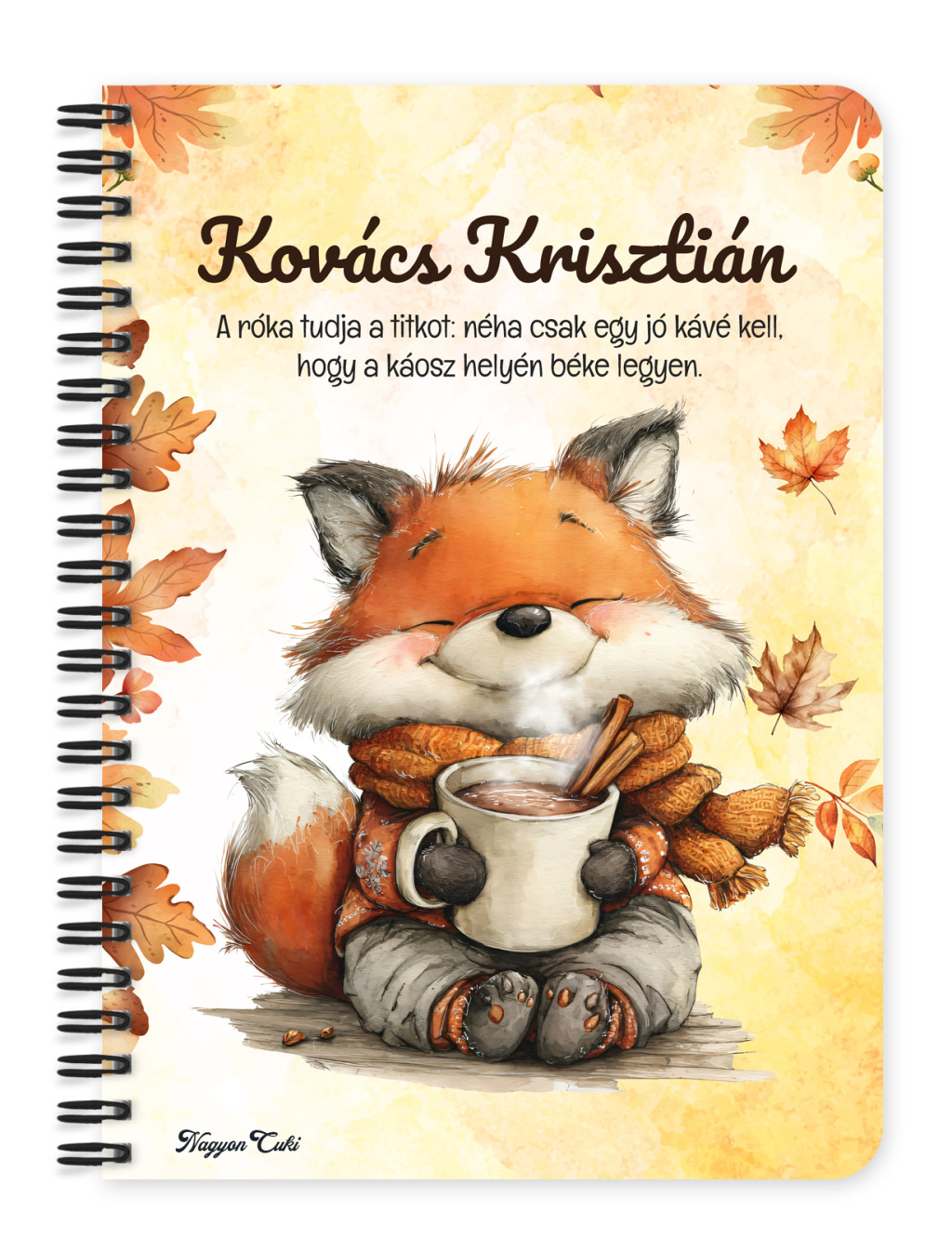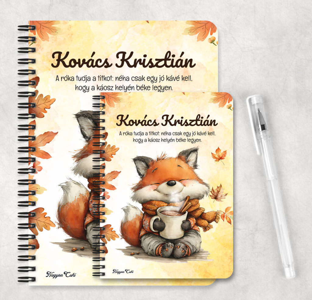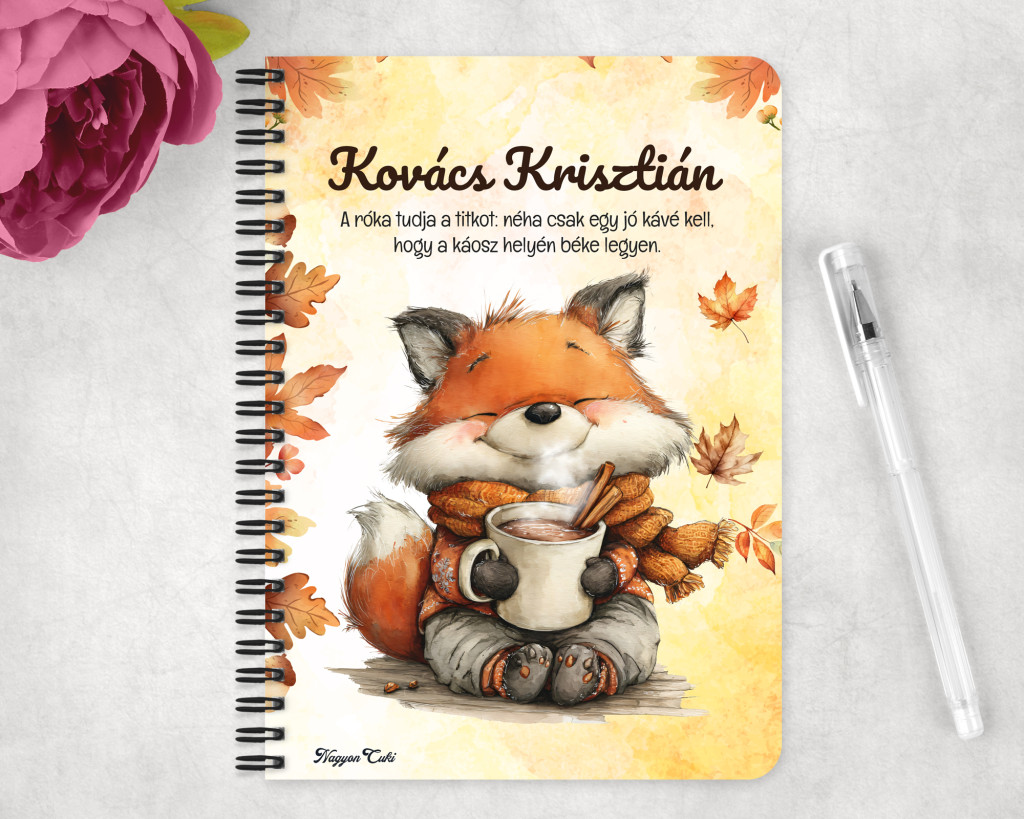 Névvel & Idézettel Kérhető Cuki őszi kávézós róka mintás Füzet | Legjobb ajándék ötlet Rókarajongóknak & Személyes Napló, jegyzetfüzet | nagyoncuki.hu