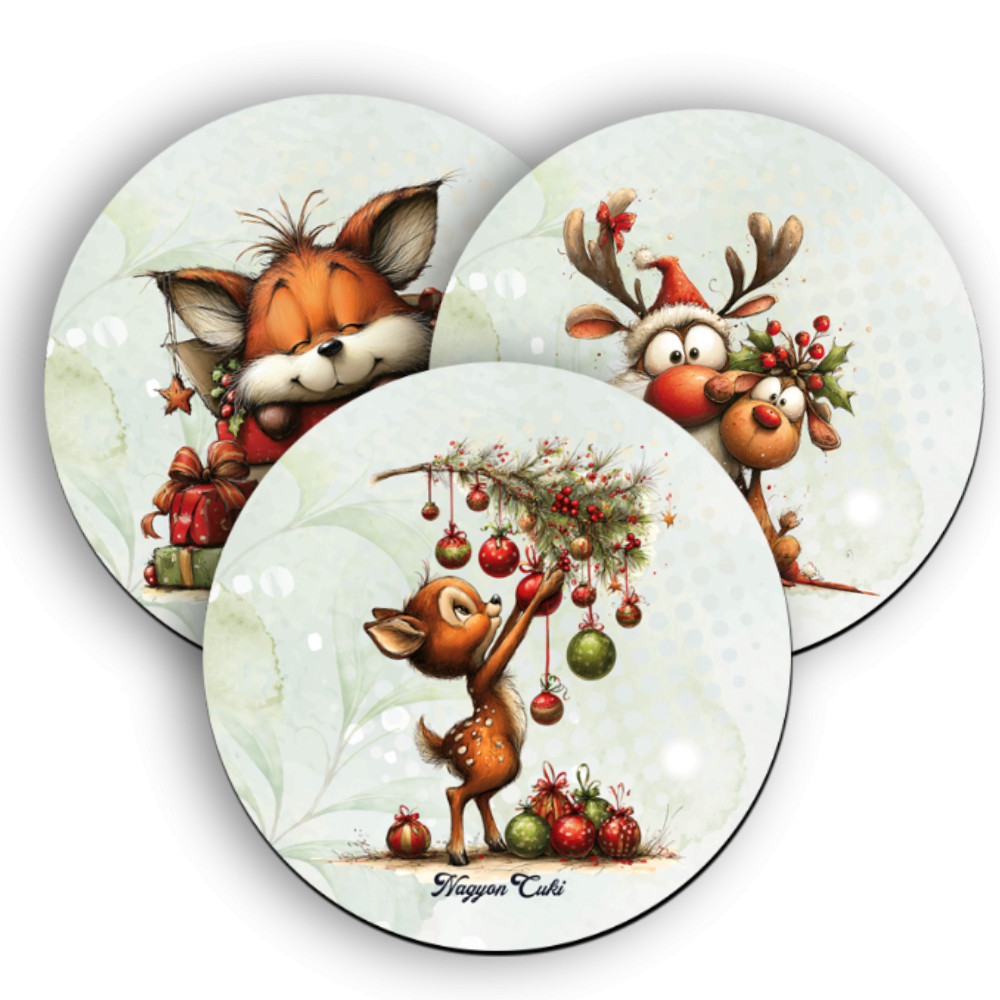 3 db cuki karácsonyi erdei varázs Kör Alakú Poháralátét Szett | Egyedi Ajándék & Téli otthon dekor | nagyoncuki.hu
