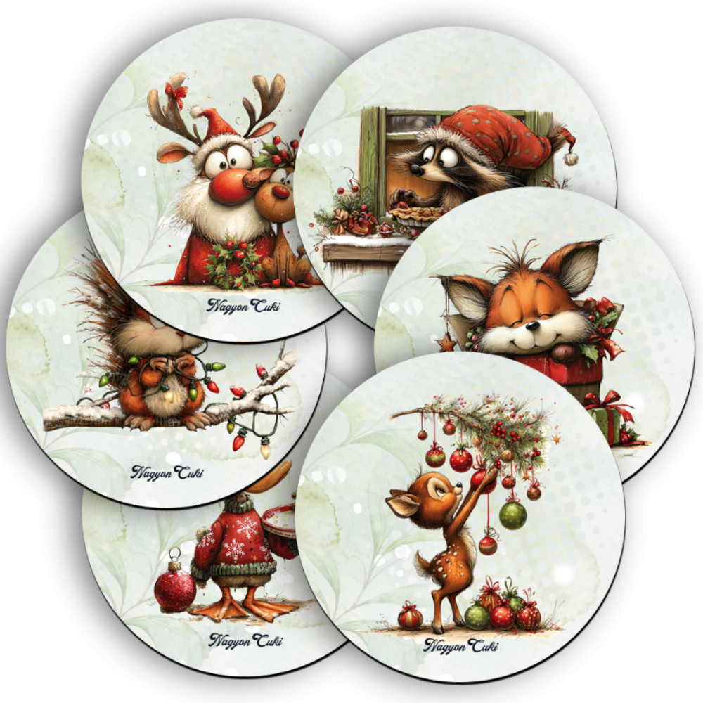 6 db cuki karácsonyi erdei varázs Kör Alakú Poháralátét Szett | Egyedi Ajándék & Téli otthon dekor | nagyoncuki.hu