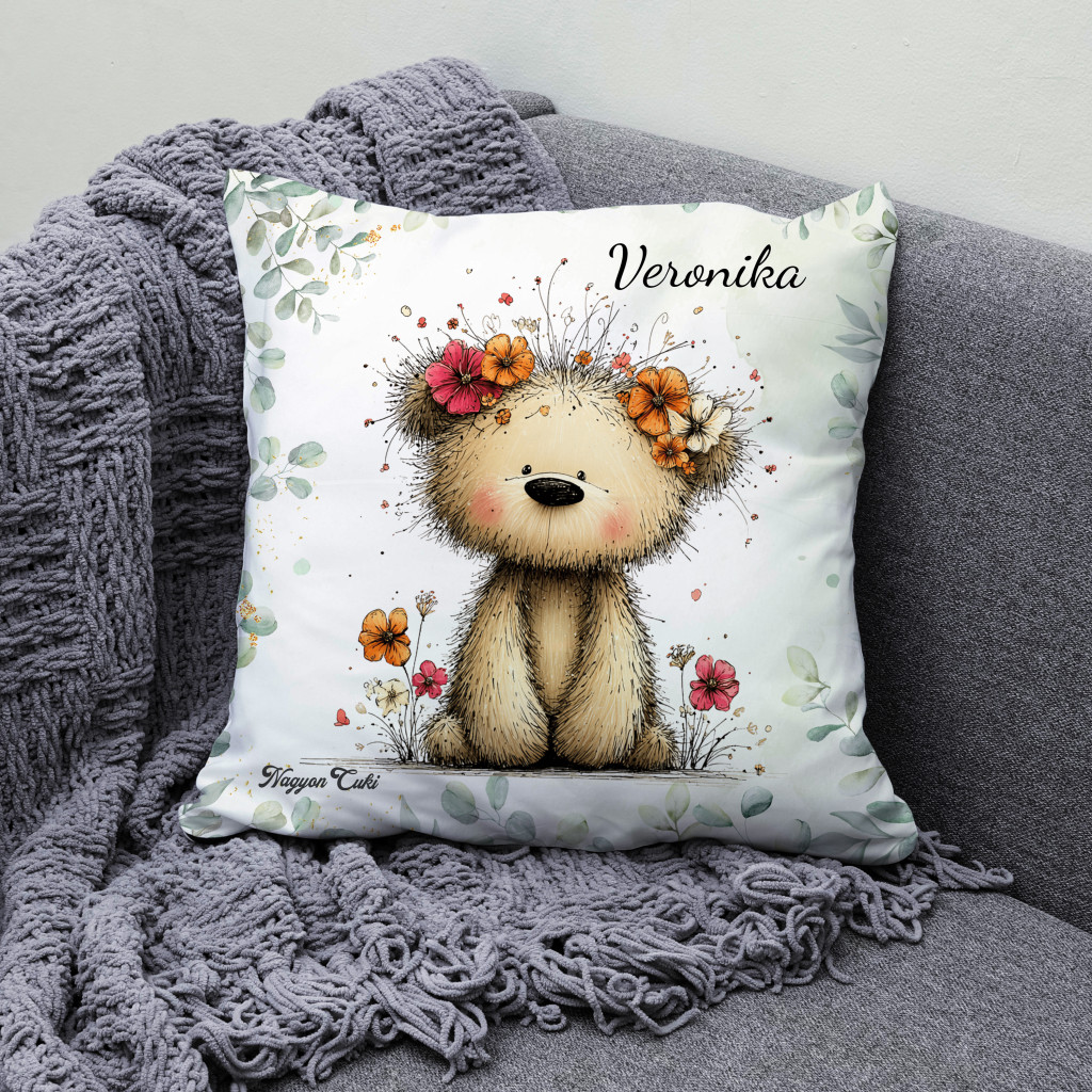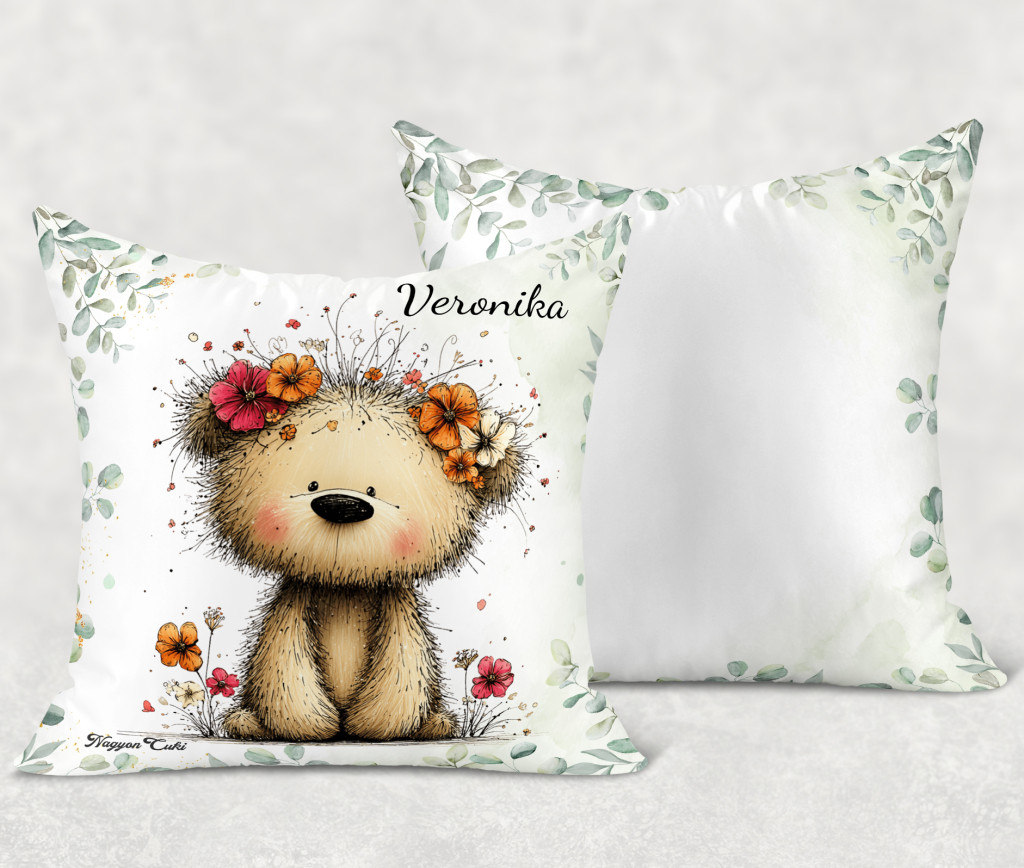 Névvel kérhető - A legcukibb tavaszi macika mintás párna | Névre Szóló Ajándék & Tavaszi otthon dekor | nagyoncuki.hu