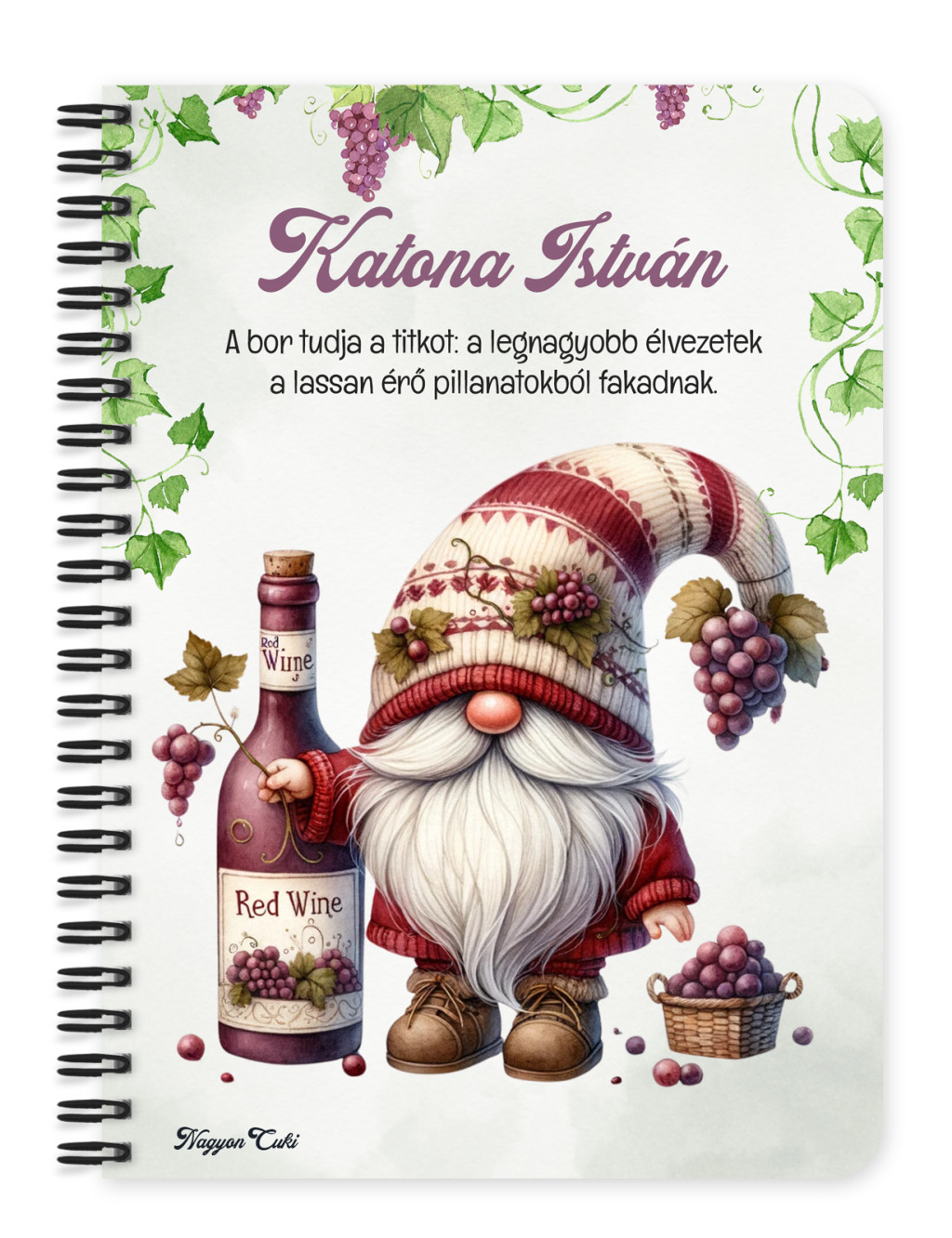 Személyre szabható - A legjobb borász manó és a vörös bor mintás füzet mintás Füzet | Egyedi Ajándék Borászoknak & Borrajongóknak & Személyes Napló | nagyoncuki.hu