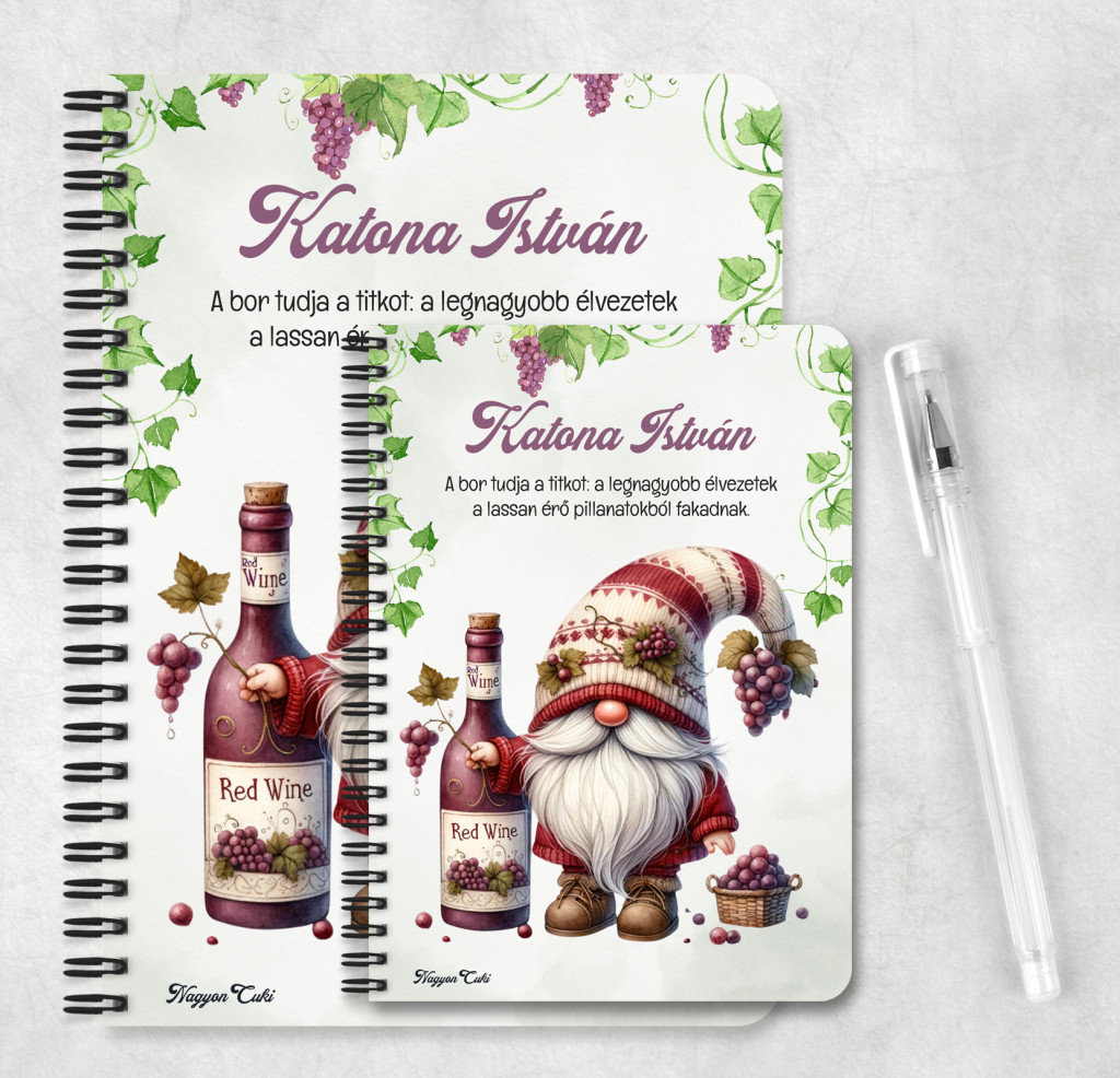 Kinek ideális ajándék ez a cuki borász manó mintás füzet?
