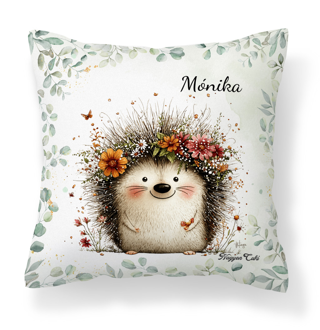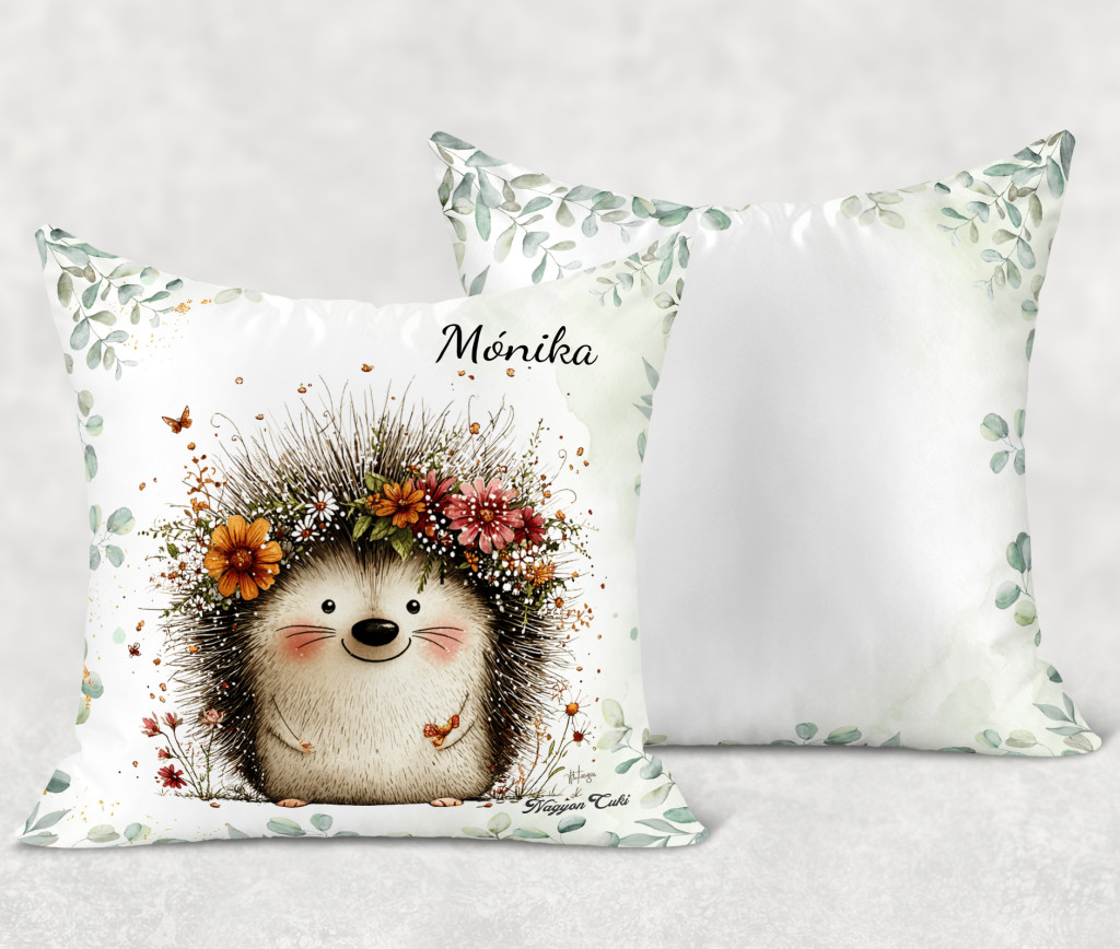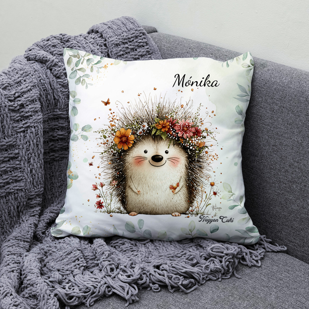 Névvel kérhető - A rét mosolygós cukisága, a süni mintás párna | Névre Szóló Ajándék & Tavaszi otthon dekor | nagyoncuki.hu