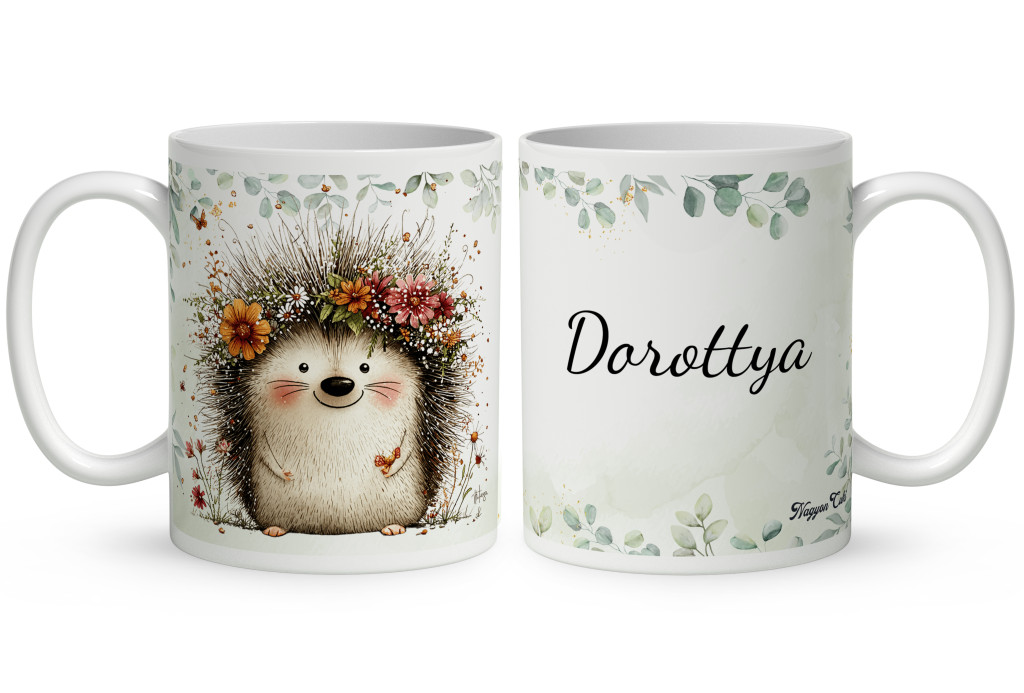 Névvel kérhető - A rét mosolygós cukisága, a süni mintás Bögre | Személyes ajándék | nagyoncuki.hu