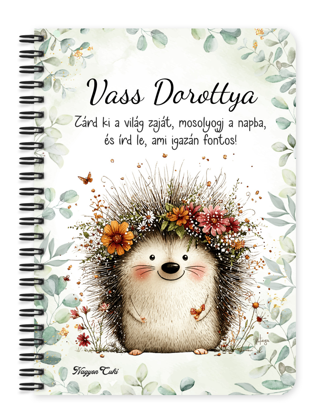 Vidd haza a tavasz frissességét! Rendeld meg most ezt az egyedi, névre szóló Cuki Tavaszi süni mintás füzetet, és adj teret a legszebb gondolatoknak...mert mindenkinek jár egy kis cukiság.