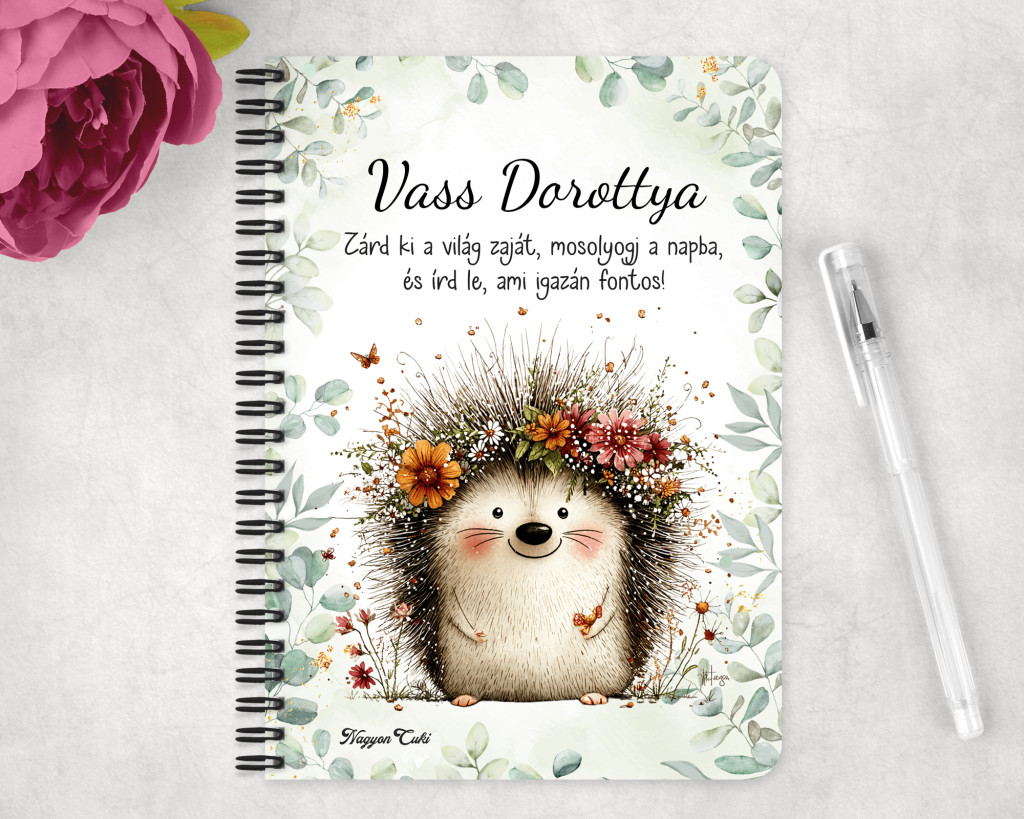 Névvel & Idézettel Kérhető - A rét mosolygós cukisága, a süni mintás Füzet / Napló | Névre Szóló Ajándék & Személyes Jegyzetfüzet | nagyoncuki.hu