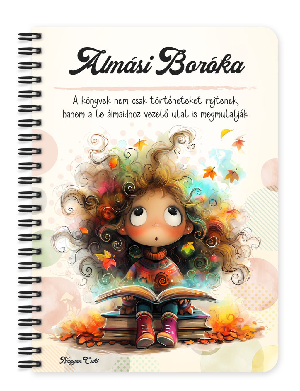 Képzeld el azt a mosolyt és inspirációt a megajándékozott arcán, amikor egy olyan füzetet tart a kezében, amely nemcsak a legféltettebb gondolatait, álmait vagy fontos jegyzeteit őrzi, hanem az őszi meghittség, a furik báj és az olvasás iránti szeretetét is tükrözi! Ez a különleges, személyre szabható, egyedi tervezésű őszi olvasó lányos füzet a könnyed elegancia, a játékos furcsaság és a nyugodt, elmélyült pillanatok bájos megtestesítője. Egy apró, szeretetteljes gesztus, amely a mindennapokat is fénnyel tölti meg, és minden lapon új ötletekre sarkall. Kiváló ajándék ötlet nőknek és mindenkinek, aki értékeli a személyes és lélekemelő meglepetéseket.