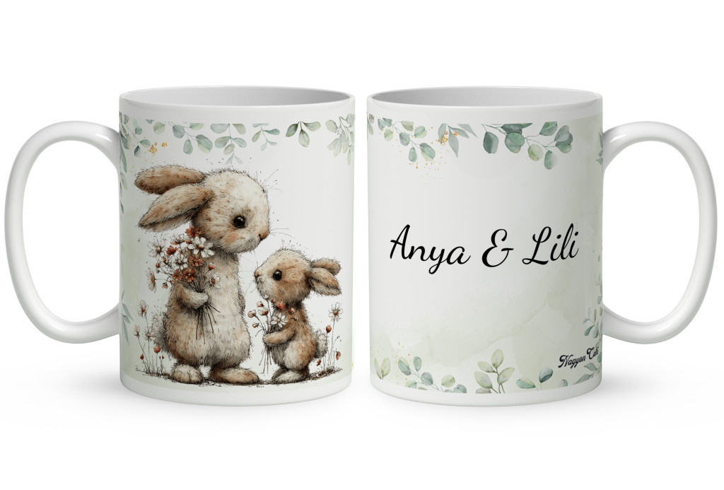 Névvel kérhető - Anya és a kicsi nyuszikája mintás Bögre | Személyes ajándék | nagyoncuki.hu