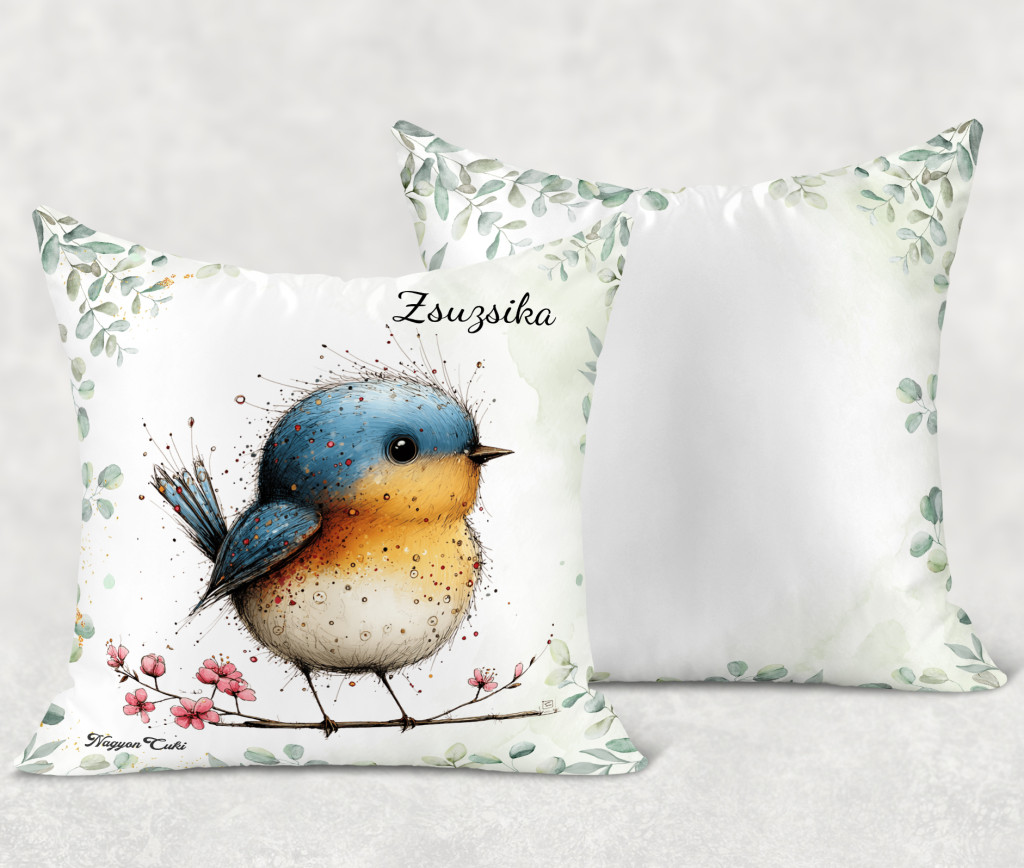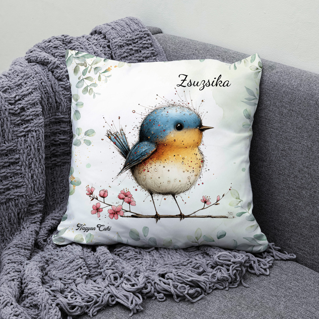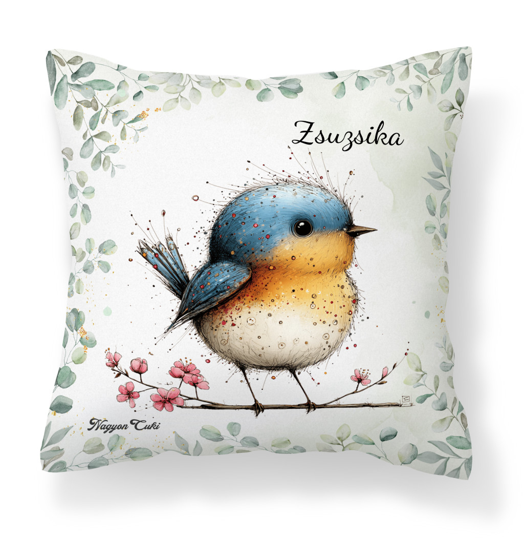 Névvel kérhető - Aranyos kék cinege, a fürge akrobata mintás párna | Névre Szóló Ajándék & Tavaszi otthon dekor | nagyoncuki.hu