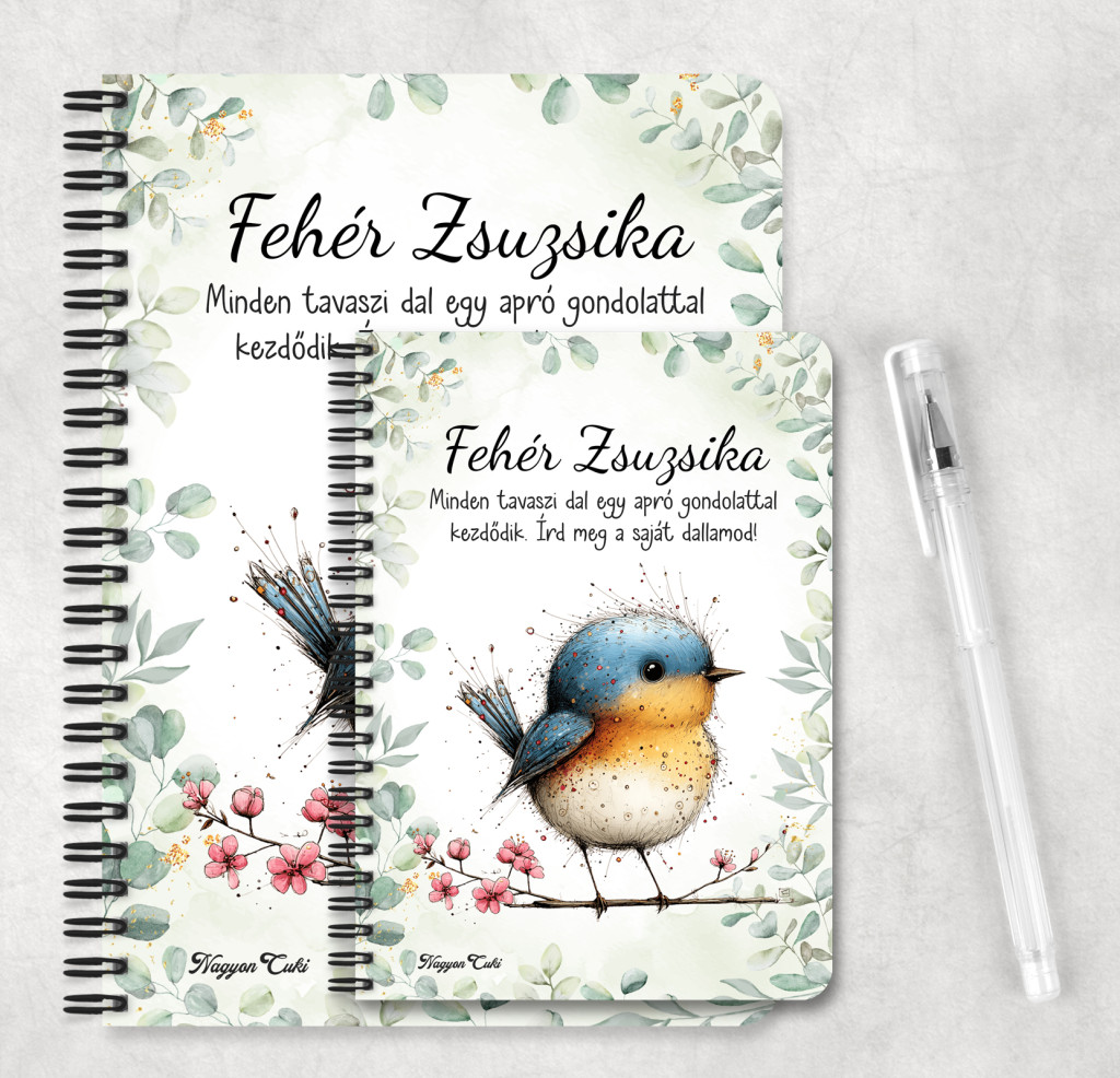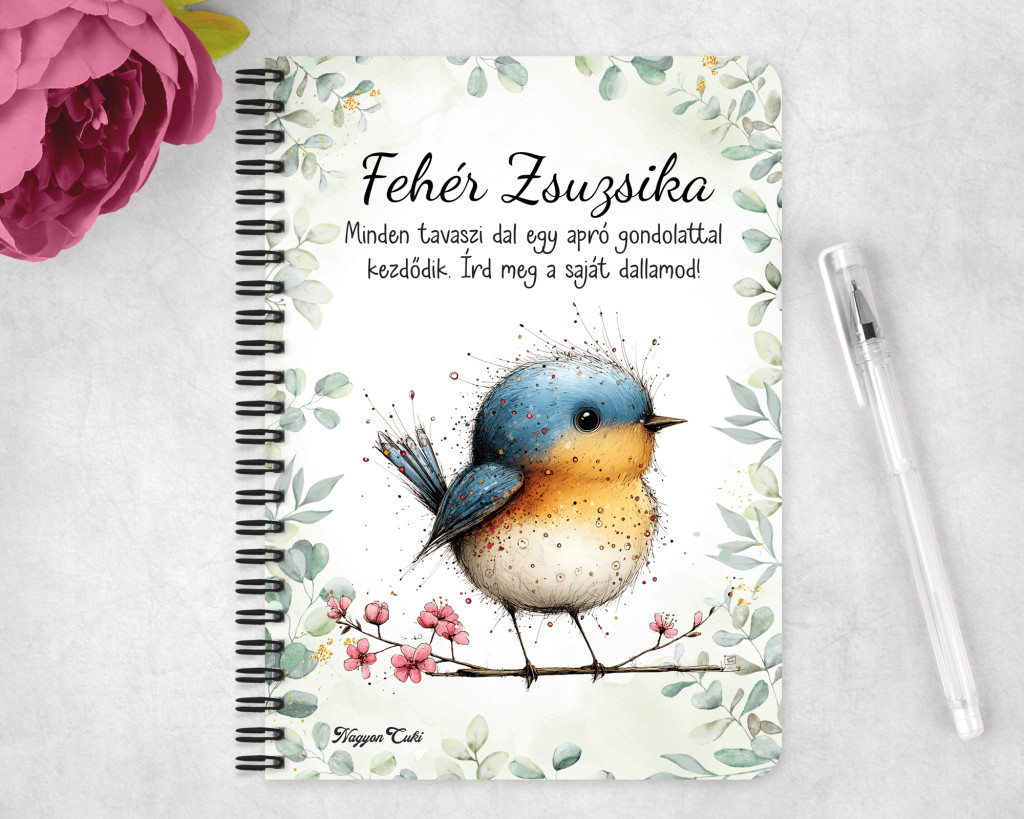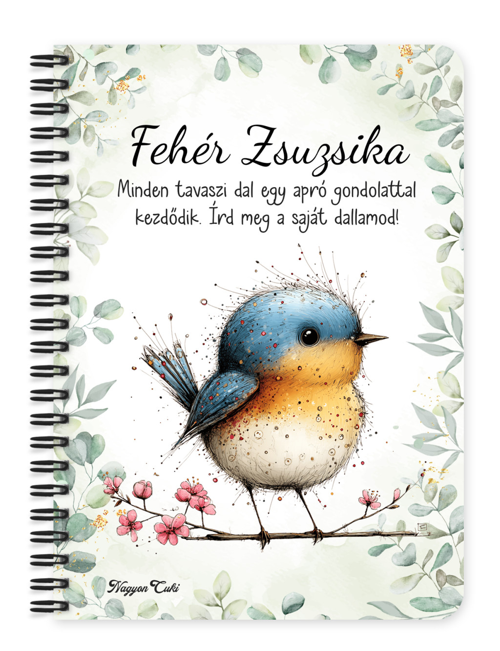 Vidd haza a tavasz frissességét! Rendeld meg most ezt az egyedi, névre szóló Cuki Tavaszi cinege mintás füzetet, és adj teret a legszebb gondolatoknak...mert mindenkinek jár egy kis cukiság.