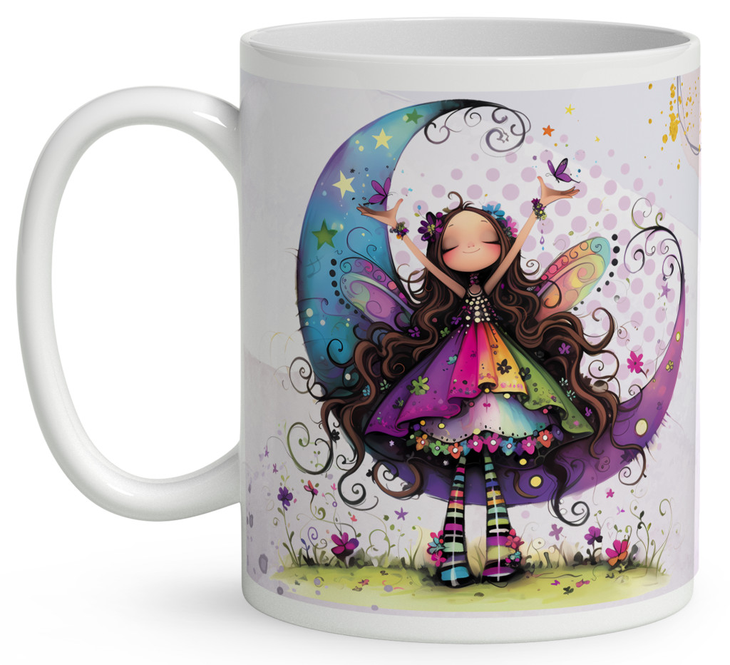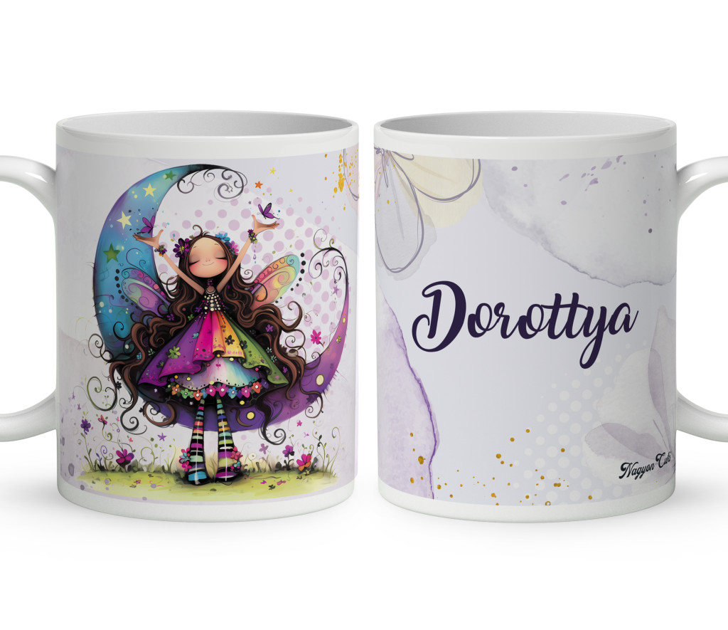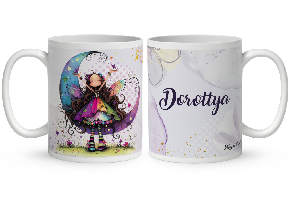 Névvel kérhető - Aranyos lila virágos tündér és a hold mintás Bögre | Egyedi Ajándék Lányoknak és Nőknek | nagyoncuki.hu