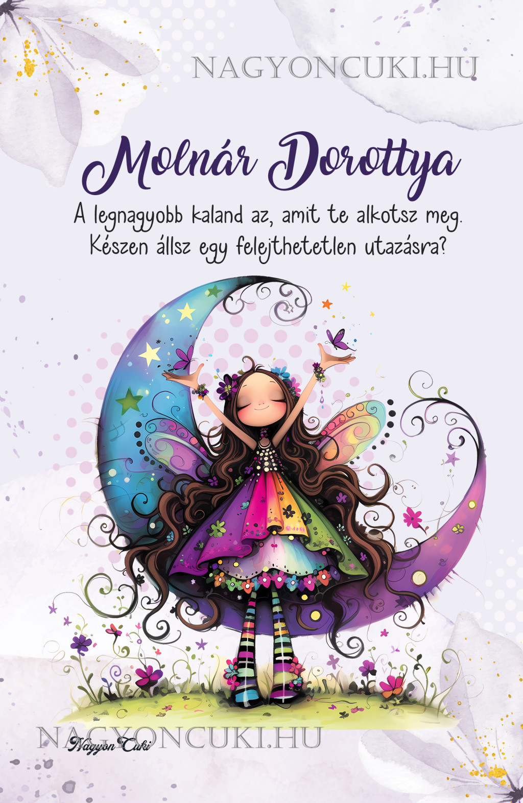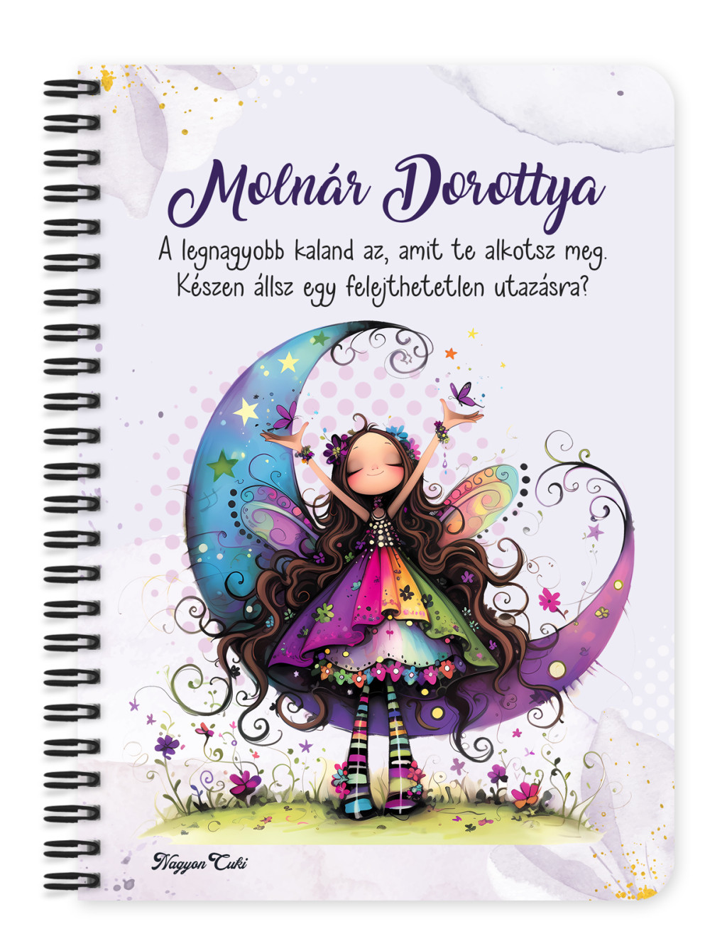 Személyre szabható - Aranyos lila virágos tündér és a hold mintás Füzet | Egyedi Ajándék & Személyes Napló | nagyoncuki.hu