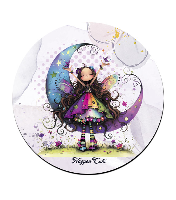 Aranyos lila virágos tündér és a hold mintás poháralátét | Egyedi Ajándék Kislányoknak & Nőknek | nagyoncuki.hu