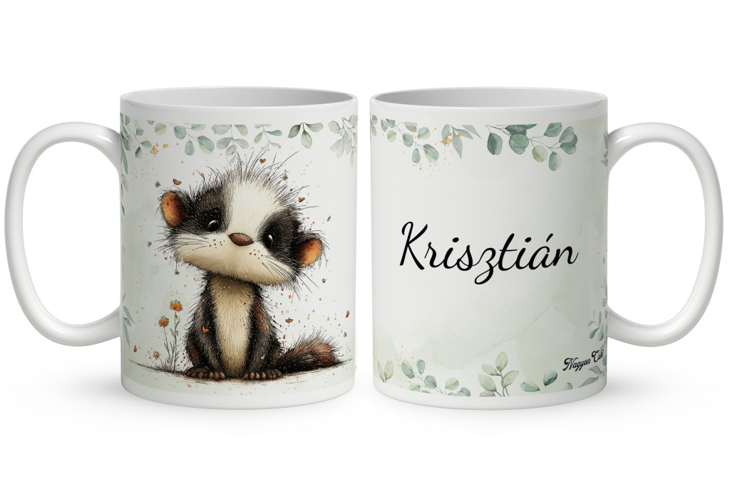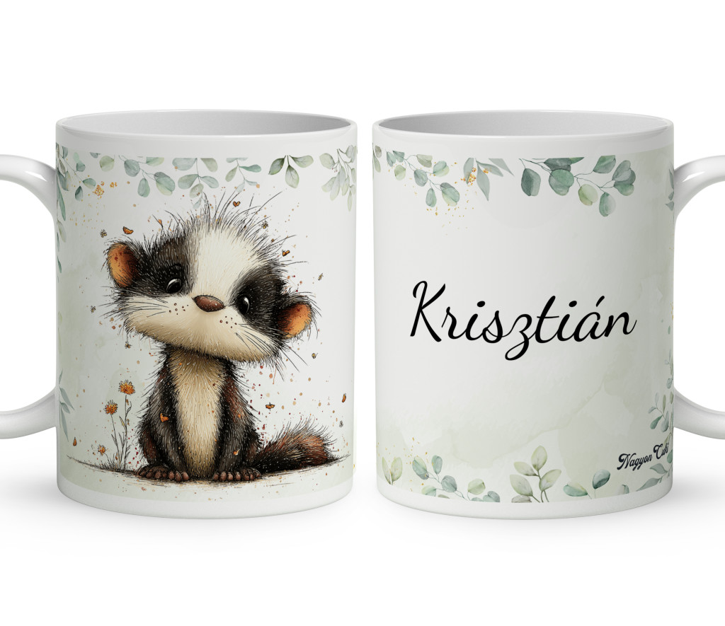 Névvel kérhető - Az erdő bölcs remetéje, a cuki borz mintás Bögre | Személyes ajándék | nagyoncuki.hu