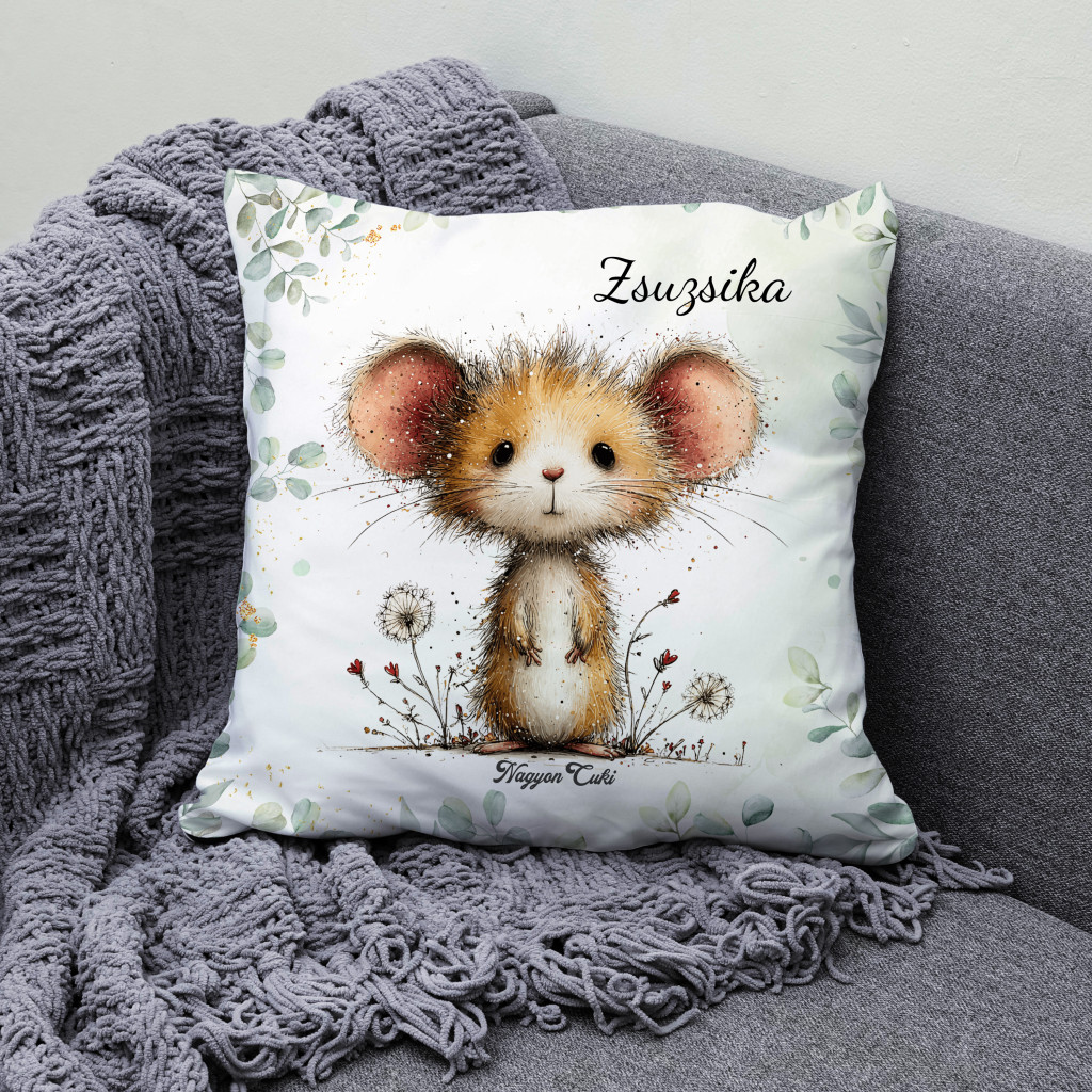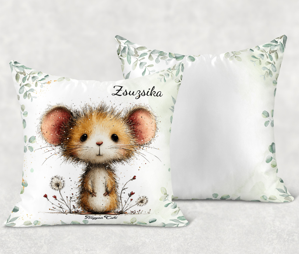 Névvel kérhető - Az erdő cuki aprósága, a mogyorós pele mintás párna | Névre Szóló Ajándék & Tavaszi otthon dekor | nagyoncuki.hu
