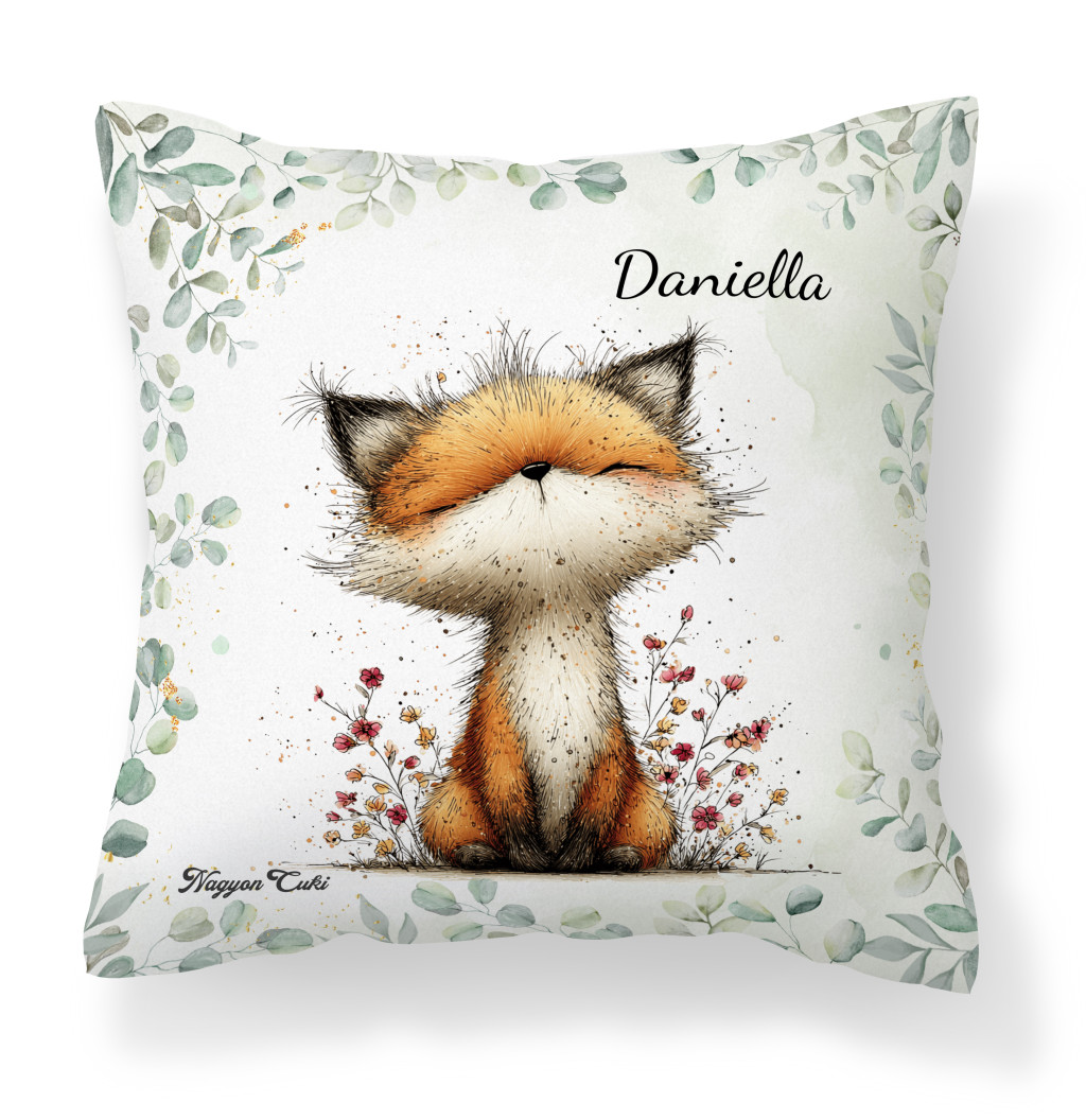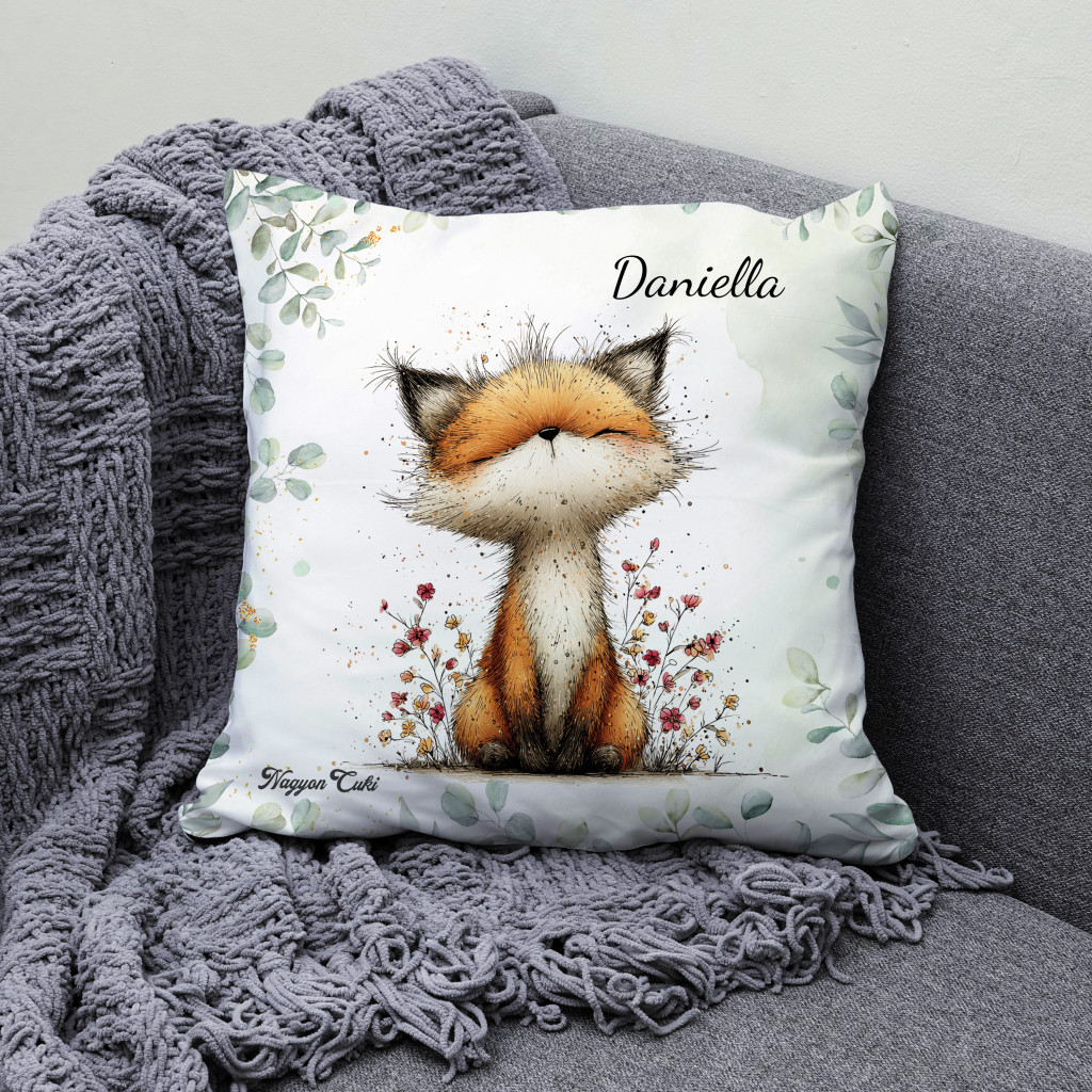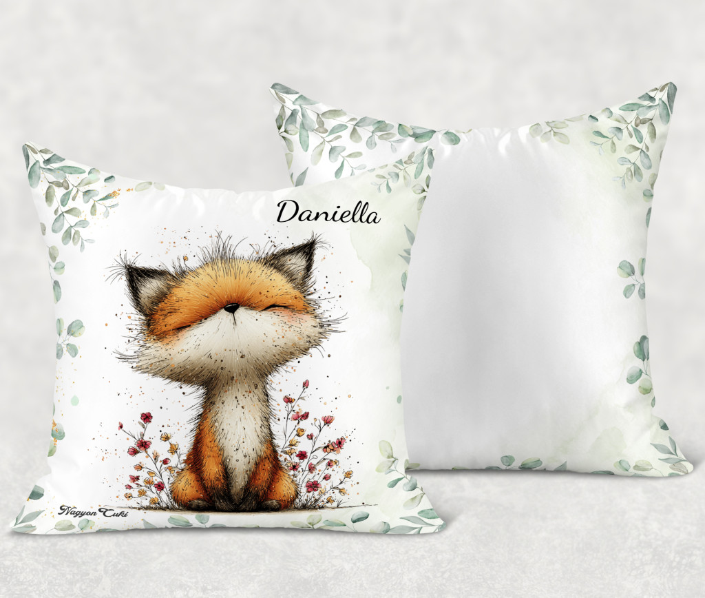 Névvel kérhető - Az erdő kis ravaszdija, a vörös róka mintás párna | Névre Szóló Ajándék & Tavaszi otthon dekor | nagyoncuki.hu