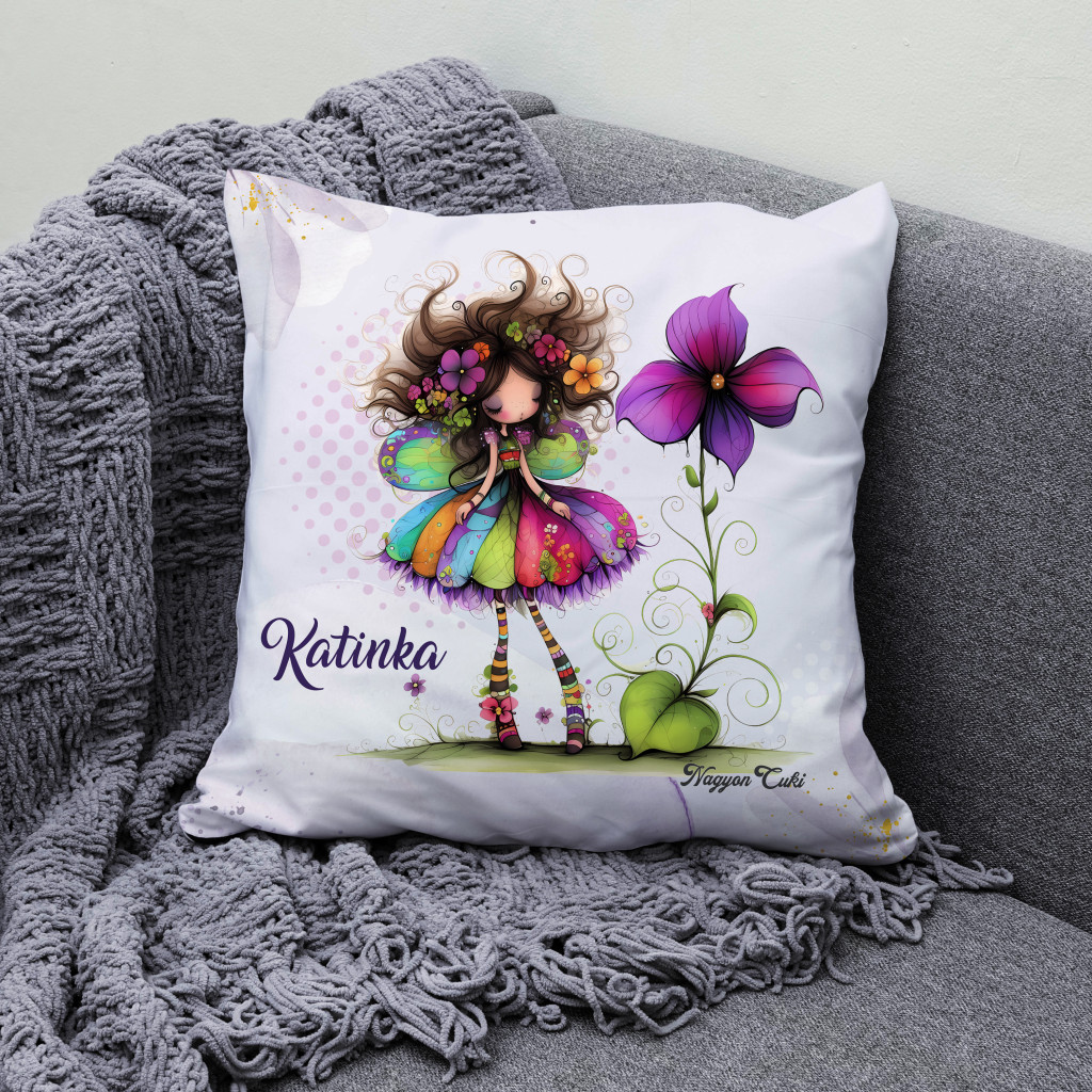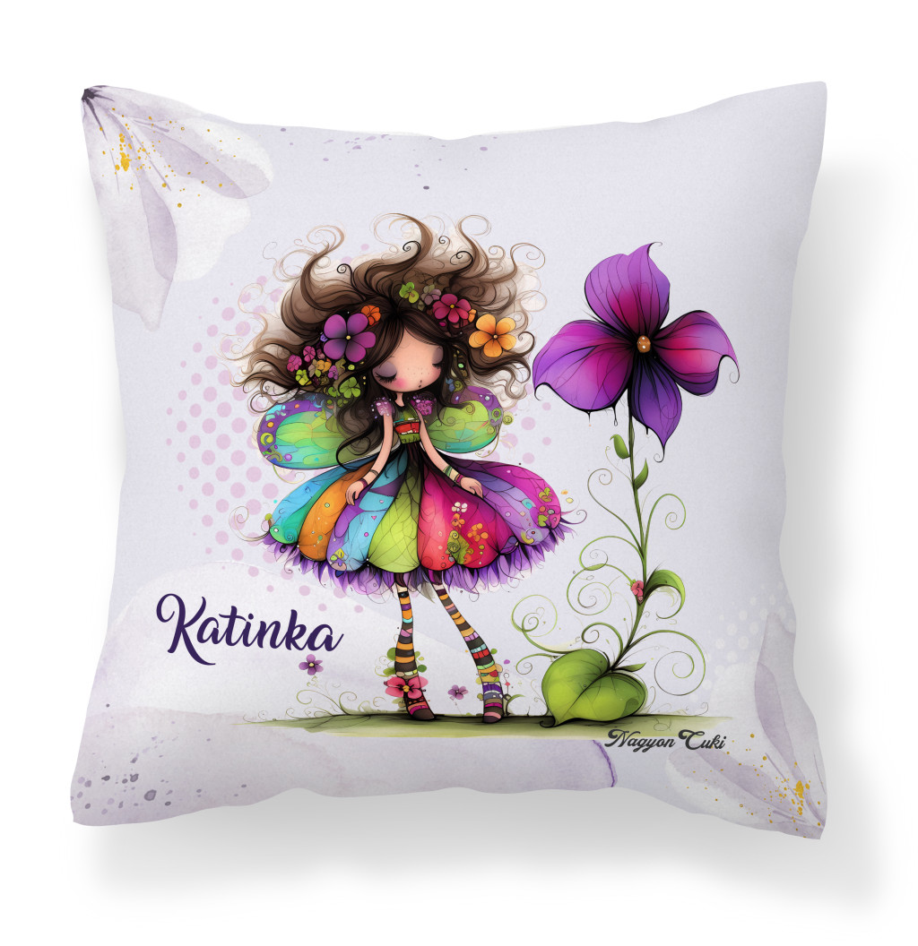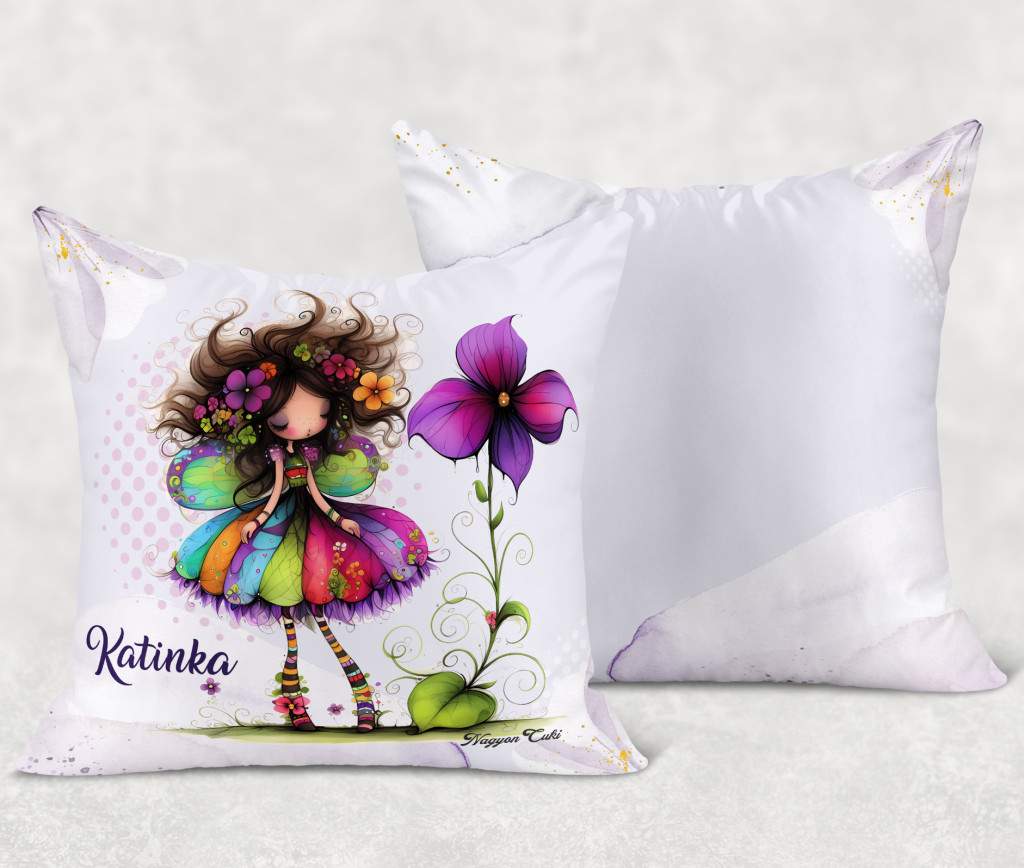 Névvel kérhető - Bájos ibolya virágos tündér Párna | Egyedi Ajándék Nőknek & Személyes Tündéres Dekoráció | nagyoncuki.hu