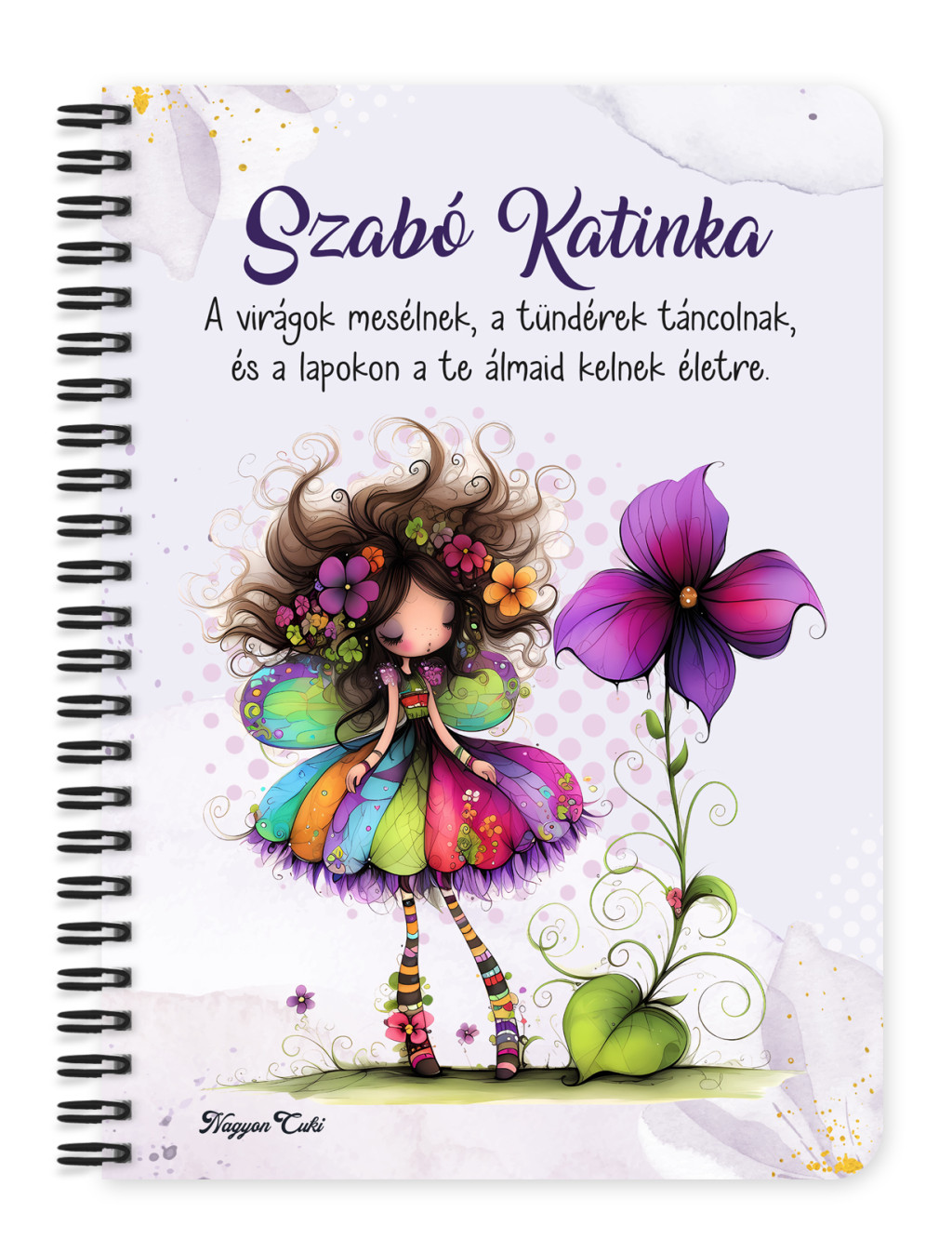 Ezt a személyre szabható Furi tavaszi tündér füzetet azért hoztuk létre mi, a nagyoncuki.hu csapata, hogy egy biztonságos, ítélkezésmentes helyet adjunk a gondolataidnak. Amikor ezt a füzetet adod ajándékba, valójában egy gyönyörű, érzelmi üzenetet közvetítesz. Az ajándék a szeretetünk és a támogatásunk látható hordozója, ez a szélkócos kis tündér pedig minden lapozásnál azt suttogja: "Higgy magadban! Írj, rajzolj, tervezz, hibázz és kezdd újra – mert a te történeted úgy csodálatos, ahogy van!"