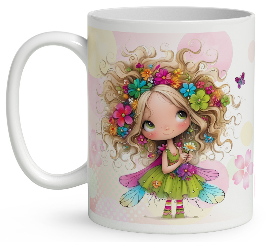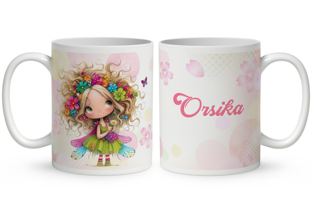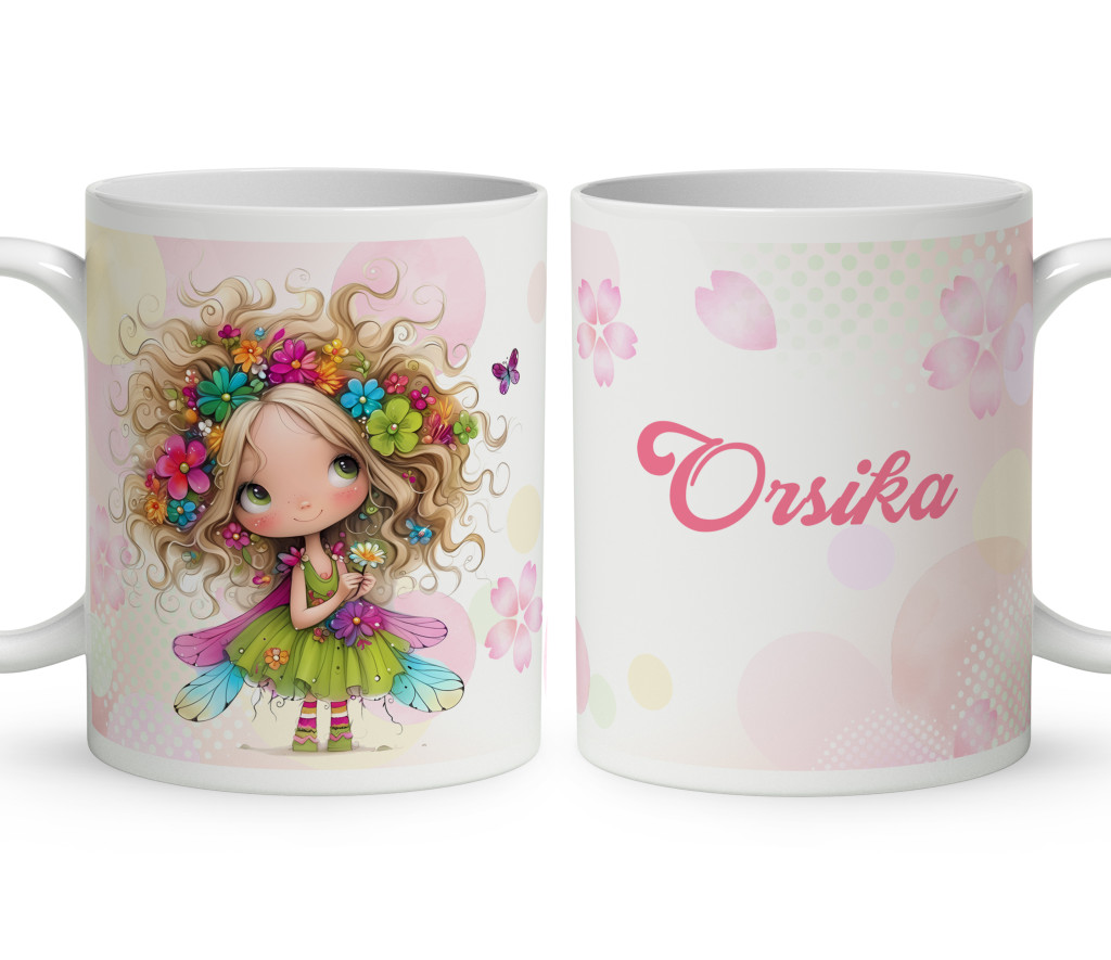 Névvel kérhető - Bájos virág tündér pillangóval mintás Bögre | Egyedi Ajándék Lányoknak és Nőknek | nagyoncuki.hu