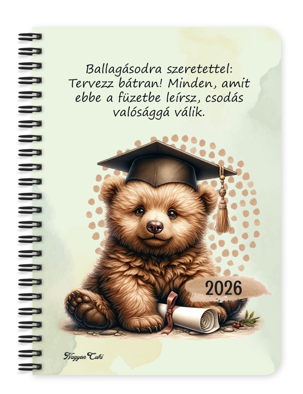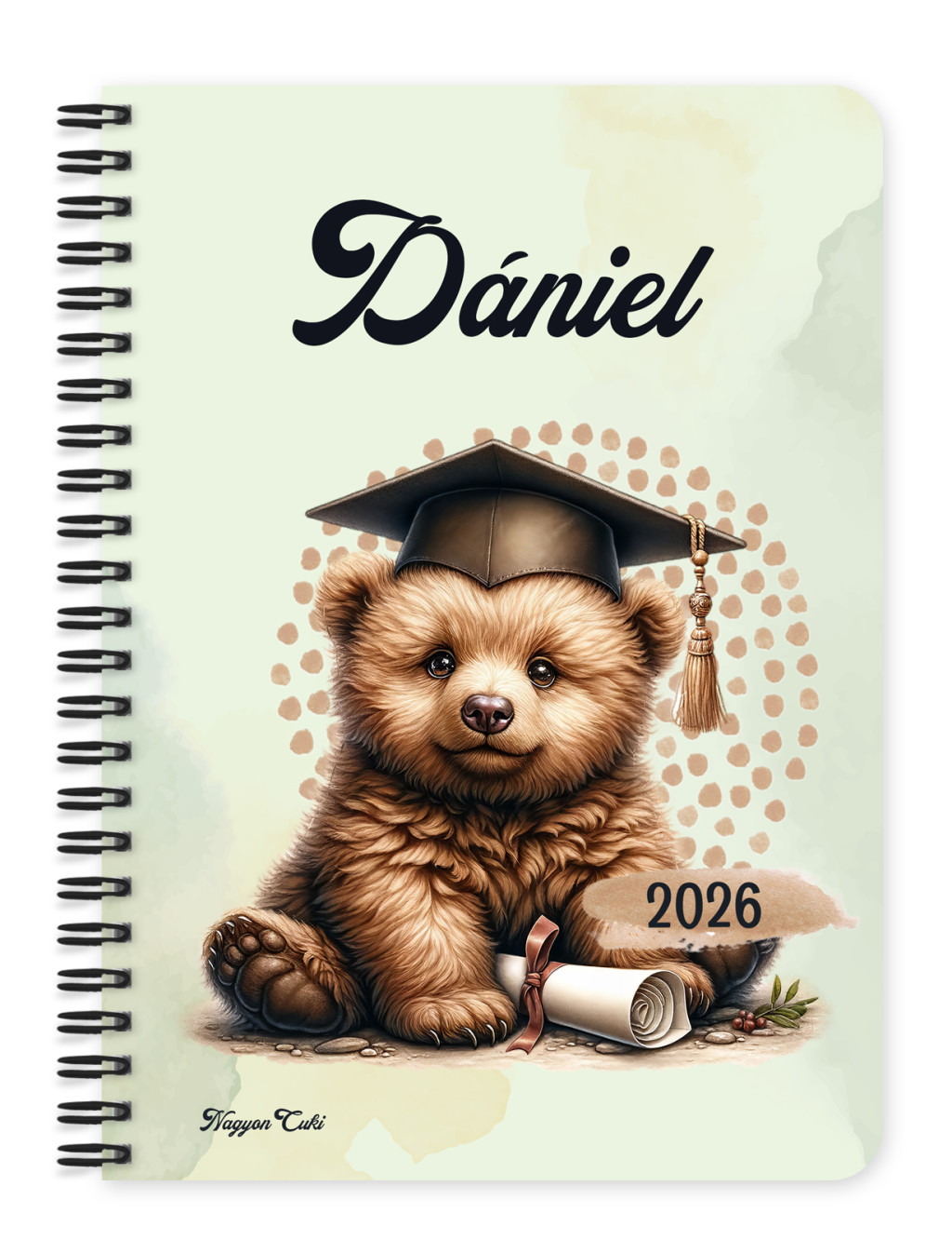 Bár a macis grafika tündéri, a füzetet funkciójából adódóan elsősorban az írni tudó korosztálynak (felsőbb éveseknek, középiskolásoknak, egyetemistáknak) javasoljuk. Ovisoknak inkább a névre szóló bögréinket vagy ölelhető párnáinkat ajánljuk!