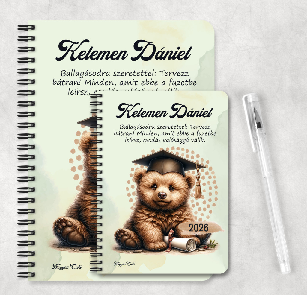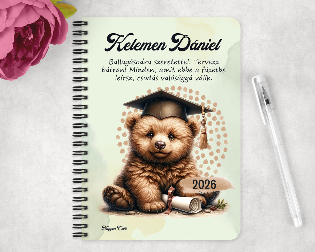 Tökéletes ballagási ajándék ötletet keresel? Névre szóló macis füzet saját idézettel – Személyes napló és jegyzetfüzet