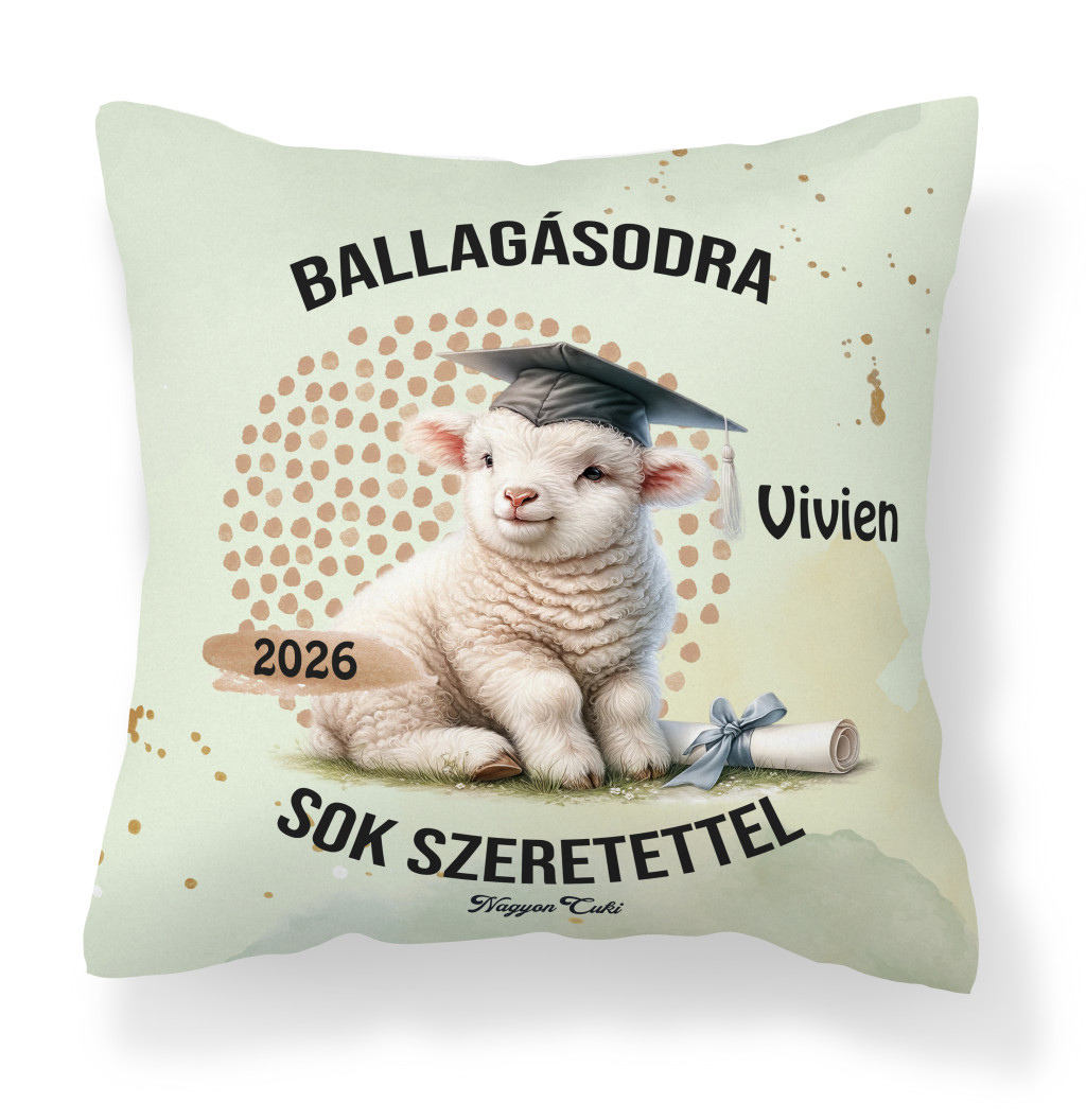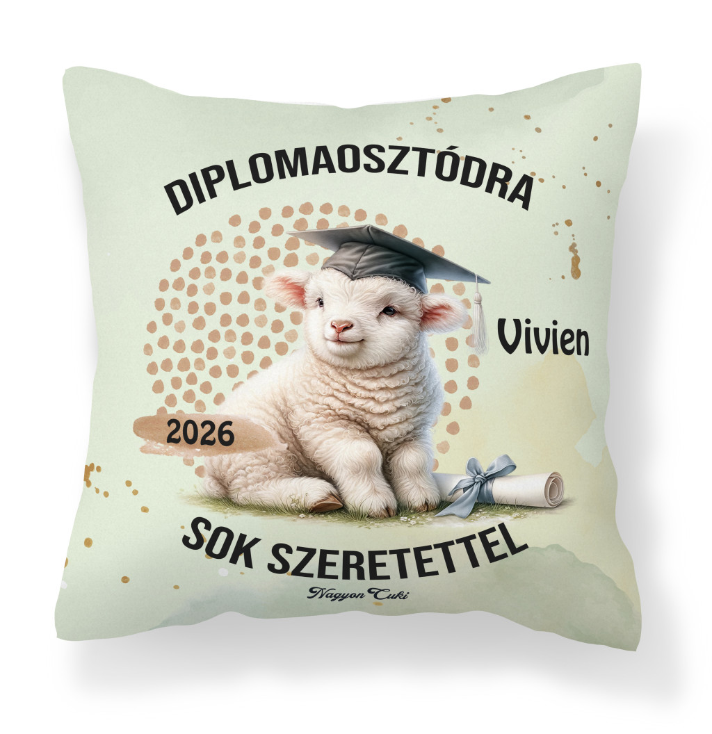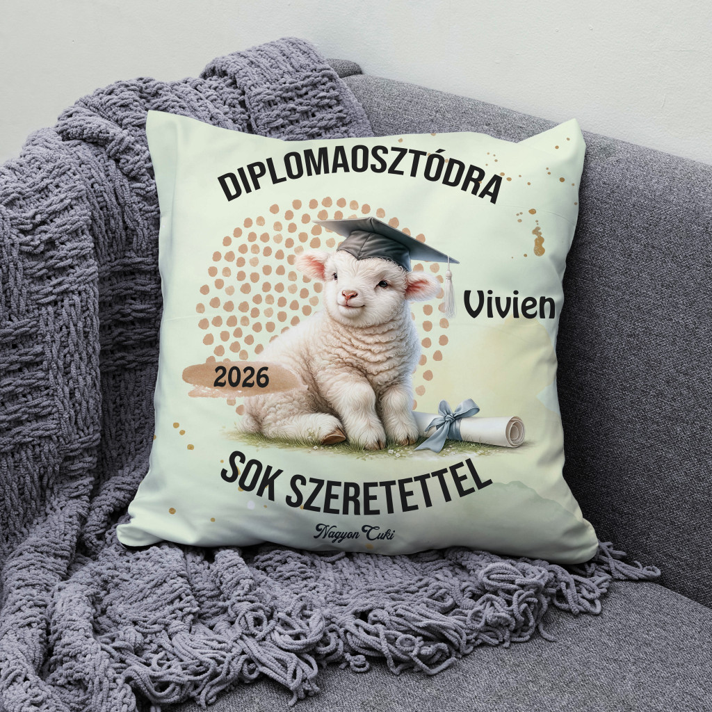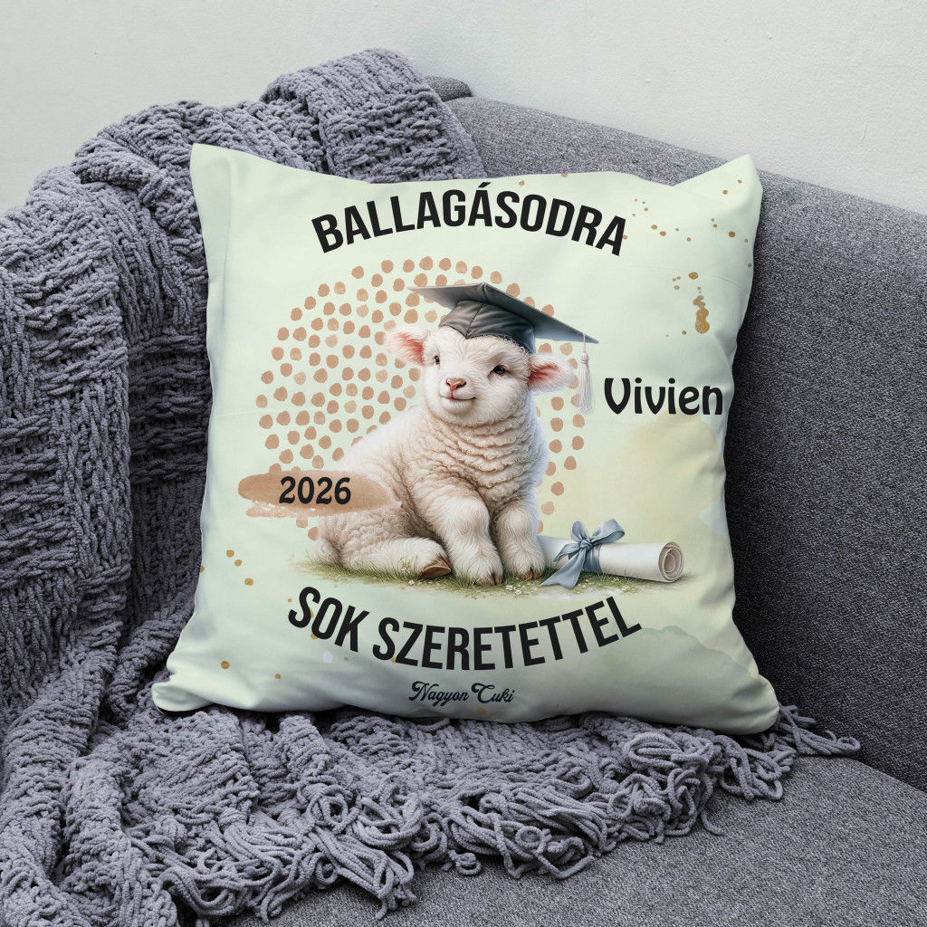 Tökéletes ballagási ajándék ötletet keresel? Névre szóló bárány mintás párna 2026-os Ballagásra és Diplomaosztóra – Az elért sikerek legpuhább őrzője