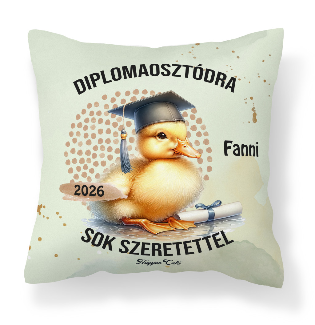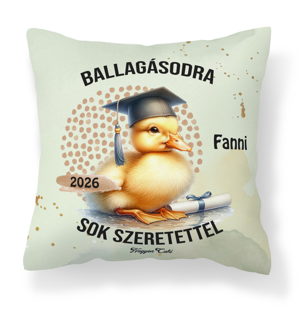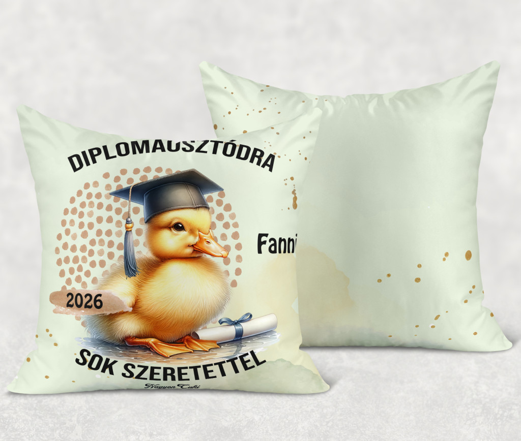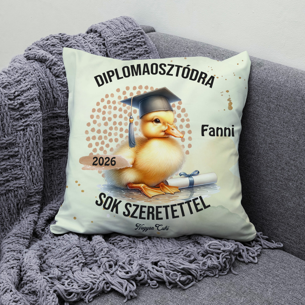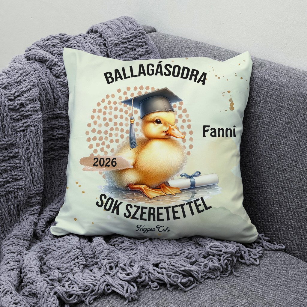 Tökéletes ballagási ajándék ötletet keresel? Névre szóló kacsa mintás párna 2026-os Ballagásra és Diplomaosztóra – Az elért sikerek legpuhább őrzője
