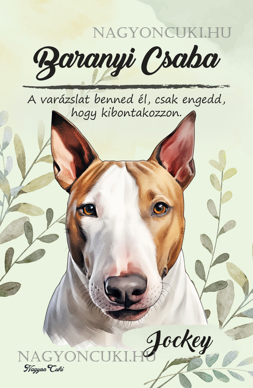• Stílusos Fajtaspecifikus Dizájn: A grafika szeretettel és a részletekre való odafigyeléssel készült, hogy megragadja a  Barna Bullterrier fajta imádnivaló vonásait.