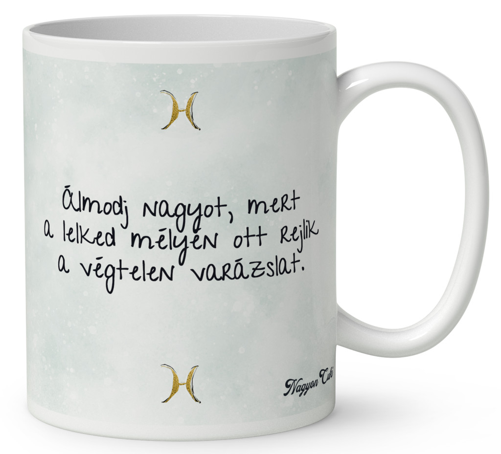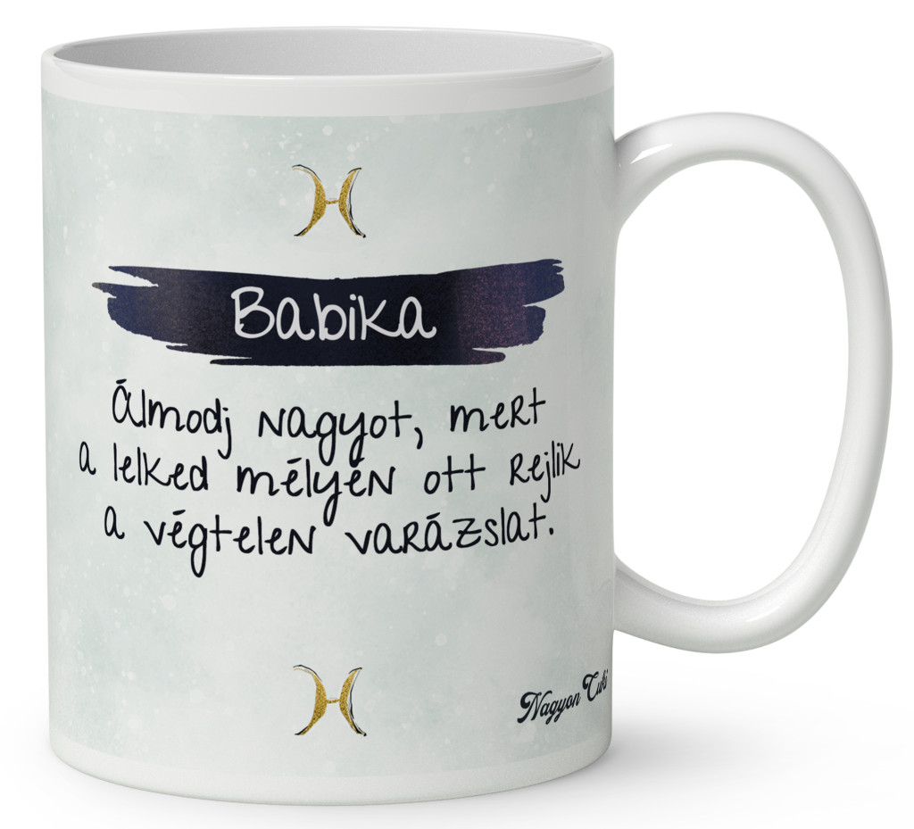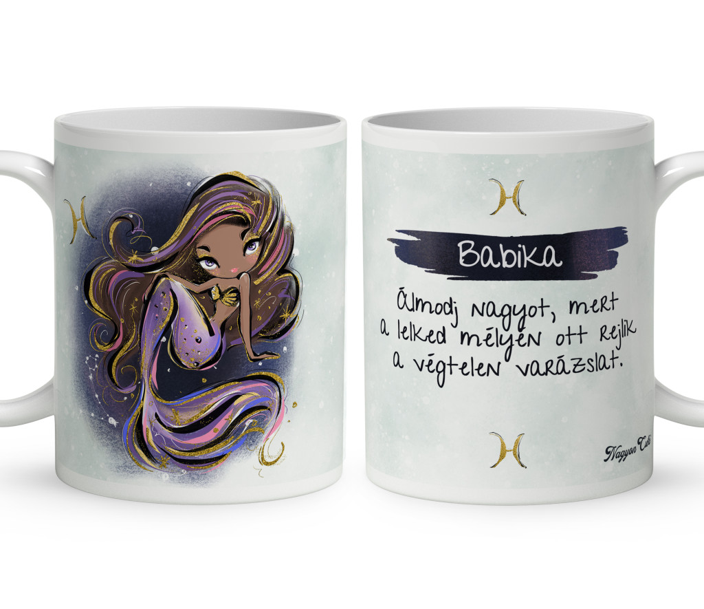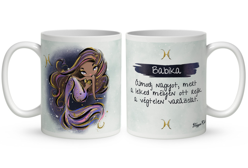 Ezt a légies, stílusos és „csili-vili” életérzést zártuk ebbe a Csini Halak lányos bögrébe. Ez nem egy egyszerű ajándéktárgy. Ez egy elismerő mosoly a reggeli kávé mellé. Amikor a tulajdonosa a kezébe veszi ezt a bögrét, és meglátja rajta a saját karakterét, a saját nevét vagy a kedvenc idézetét, tudni fogja:"Különleges vagyok, és valaki pontosan ilyennek szeret engem.".