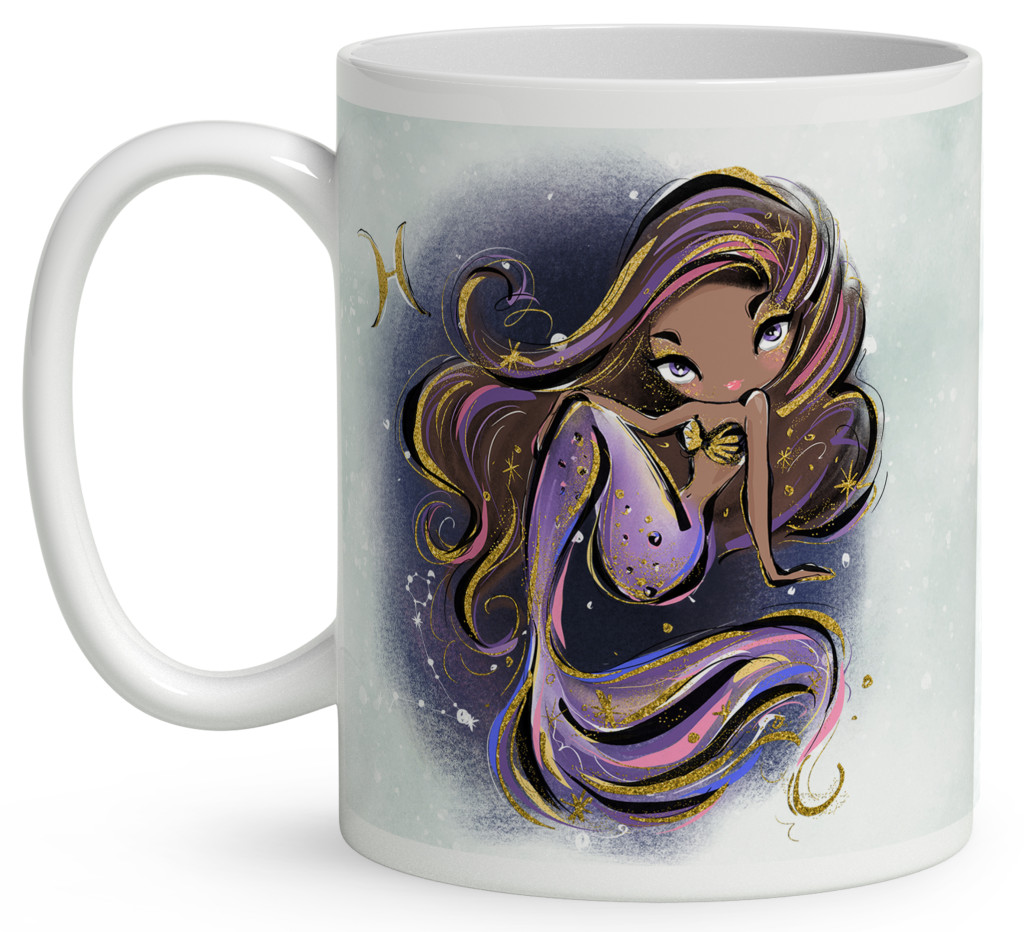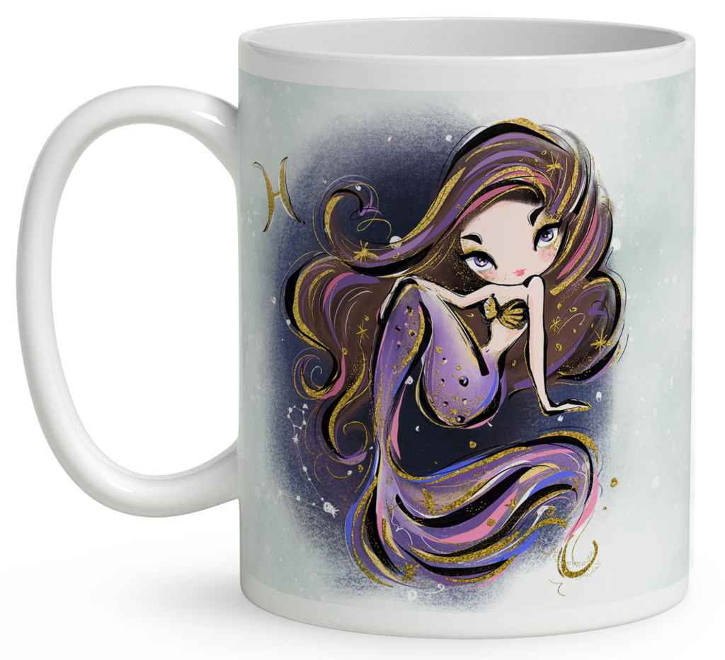 Személyre szabható - Barna hajú Csini Halak lány mintás Zodiákus Bögre | Egyedi Horoszkópos Ajándék a Csillogás jegyében | nagyoncuki.hu
