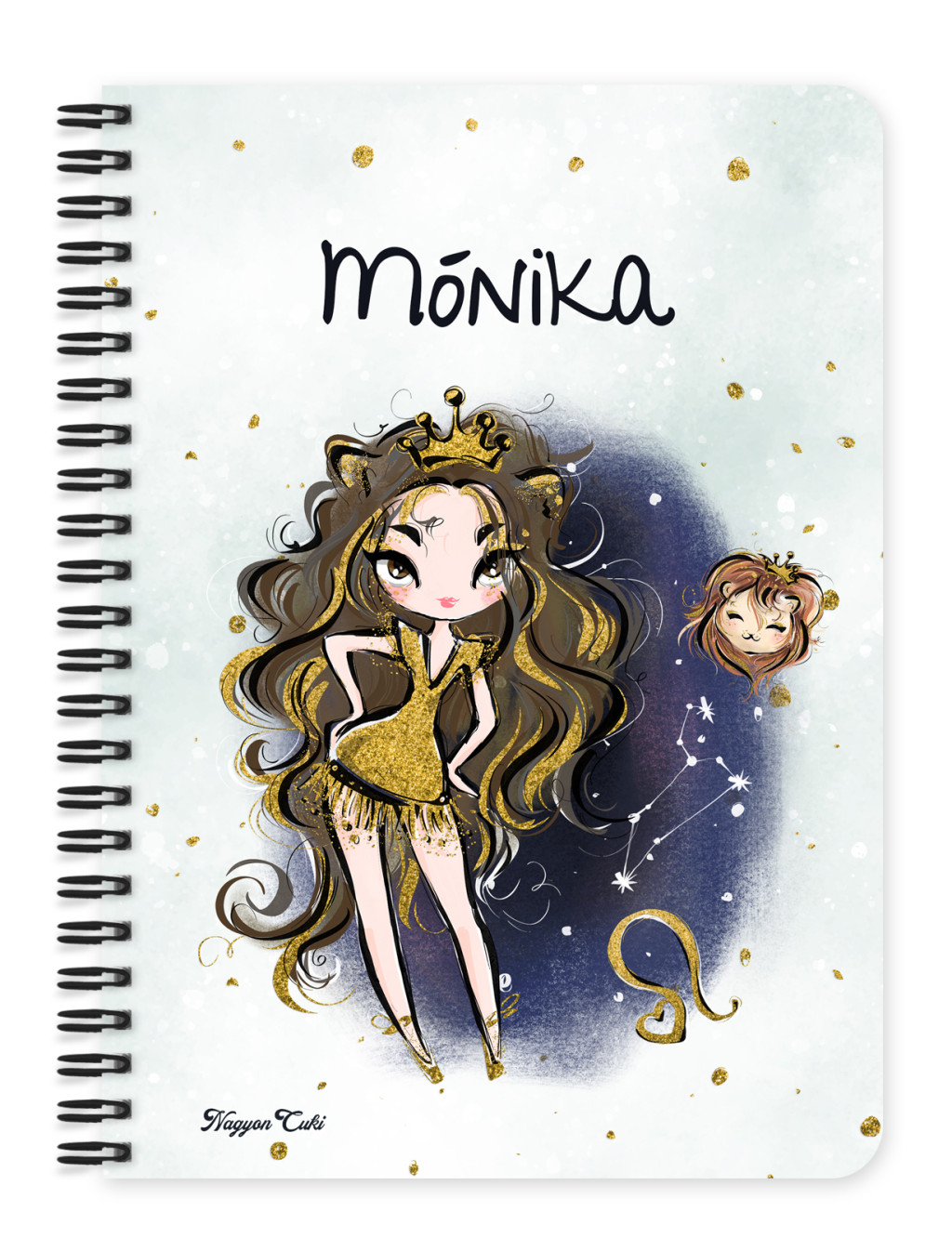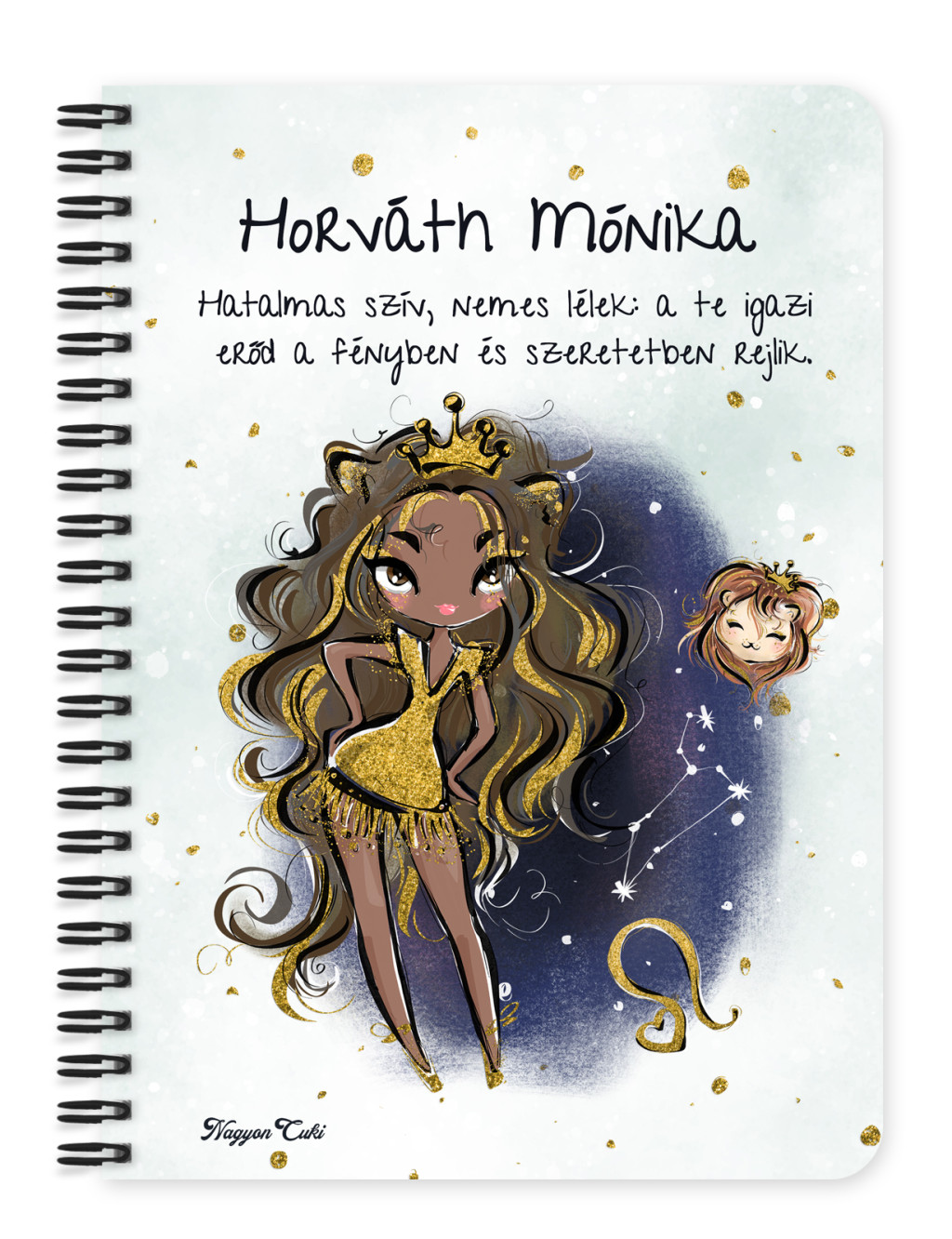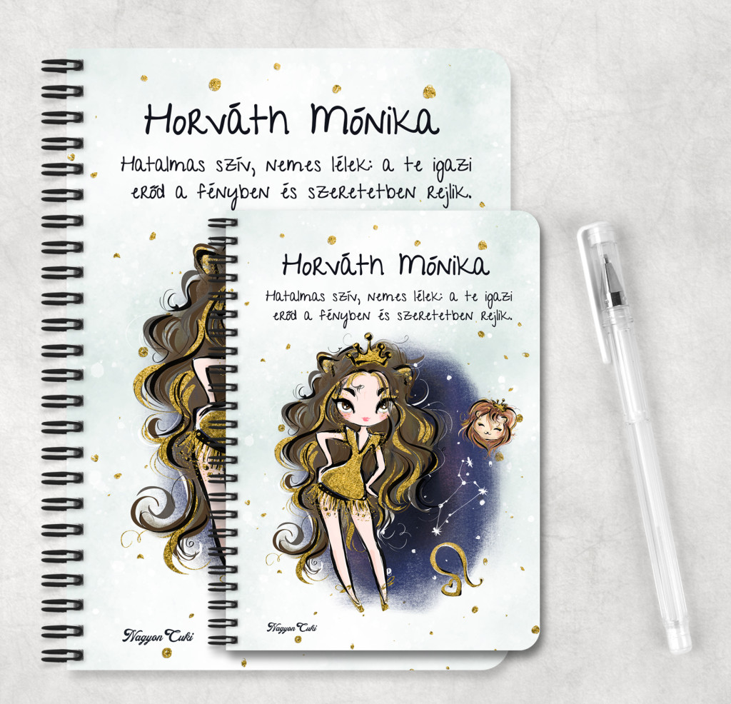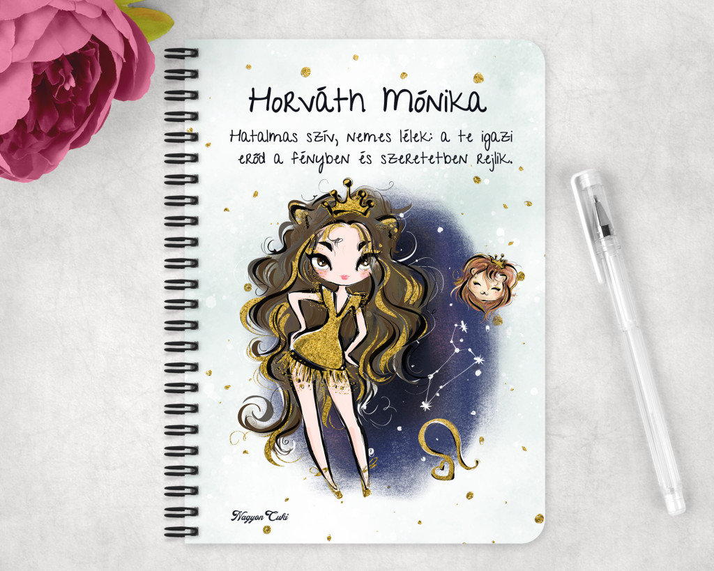 Személyre szabható - Barna hajú Csini Oroszlán lány mintás Zodiákus Füzet | Egyedi Horoszkópos Ajándék & Névre szóló Jegyzetfüzet | nagyoncuki.hu