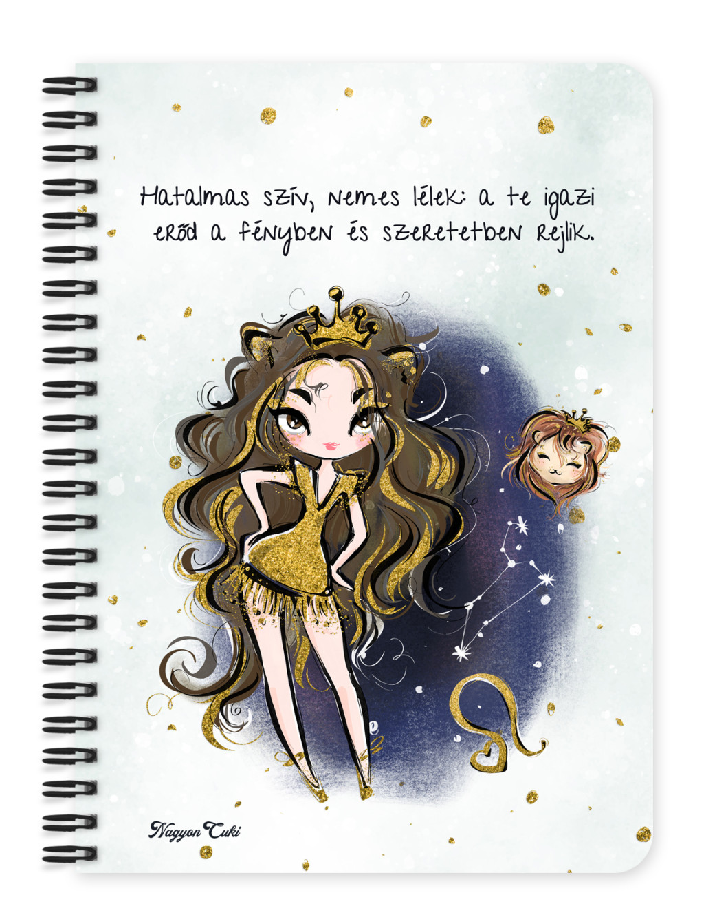 Tudod, mi teszi igazán különlegessé a Oroszlán hölgyeket? Ahogy belépnek egy szobába, megtelik a tér fénnyel és melegséggel. Méltóságteljesek, nagylelkűek és elképesztő belső erővel rendelkeznek – ők a zodiákus természetes vezetői, akik imádják az életet és a szépséget. Ez a „csili-vili” Oroszlán lányos füzet ezt a fenséges energiát és stílust hozza el a mindennapjaidba.