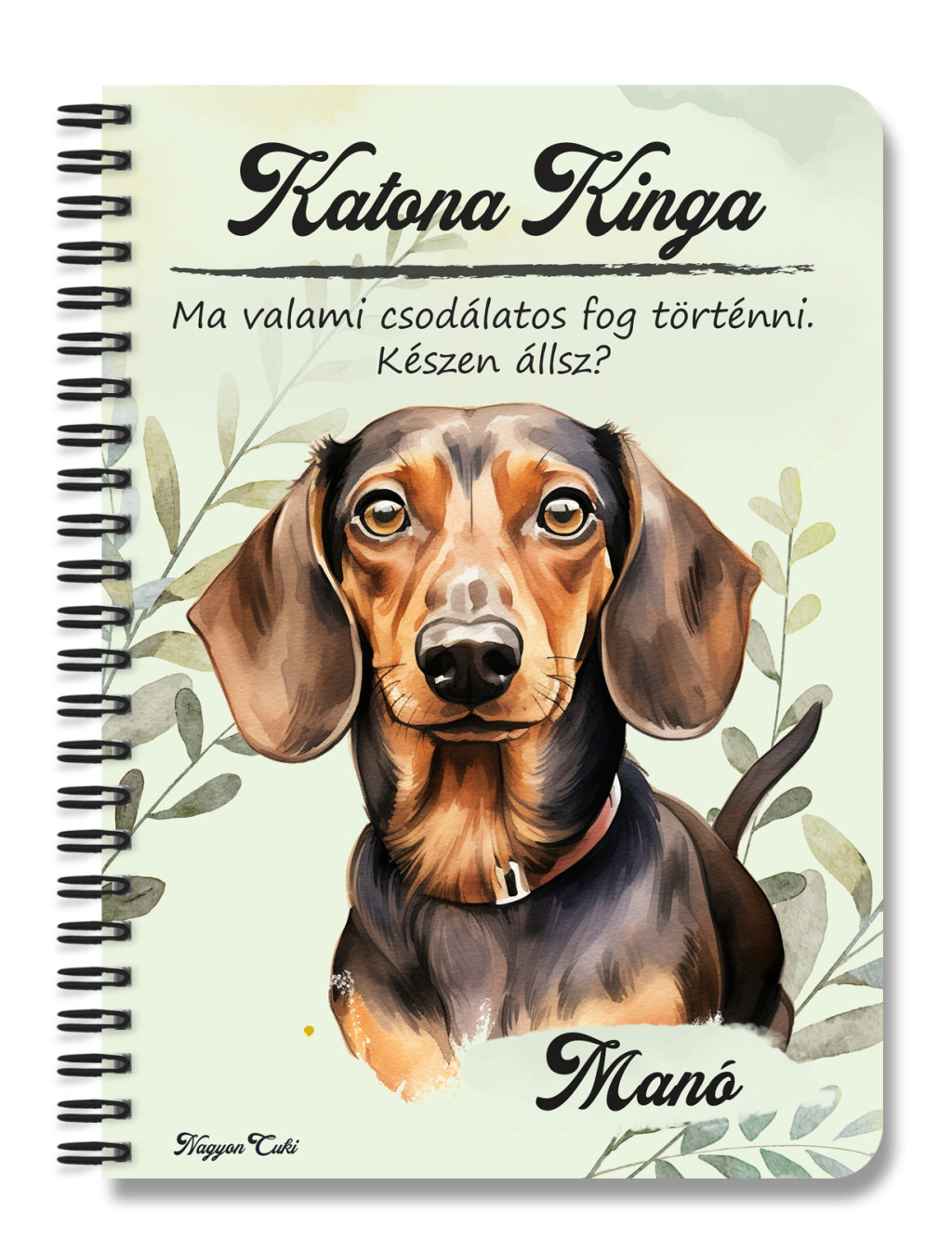 A portré hűen és szeretettel ragadja meg a Barna rövidszőrű tacskó fajta jellegzetes báját és karakterét. Tökéletes választás, ha szeretnéd a legfontosabb jegyzeteidet, terveidet vagy a kutyás kalandjaitok emlékeit egy olyan füzetbe írni, ami igazán közel áll a szívedhez. Legyen szó a kutyaovi emlékeiről, a tréning jegyzeteiről vagy a napi teendőkről, ez a kutyaportrés füzet garantáltan a kedvenced lesz.
