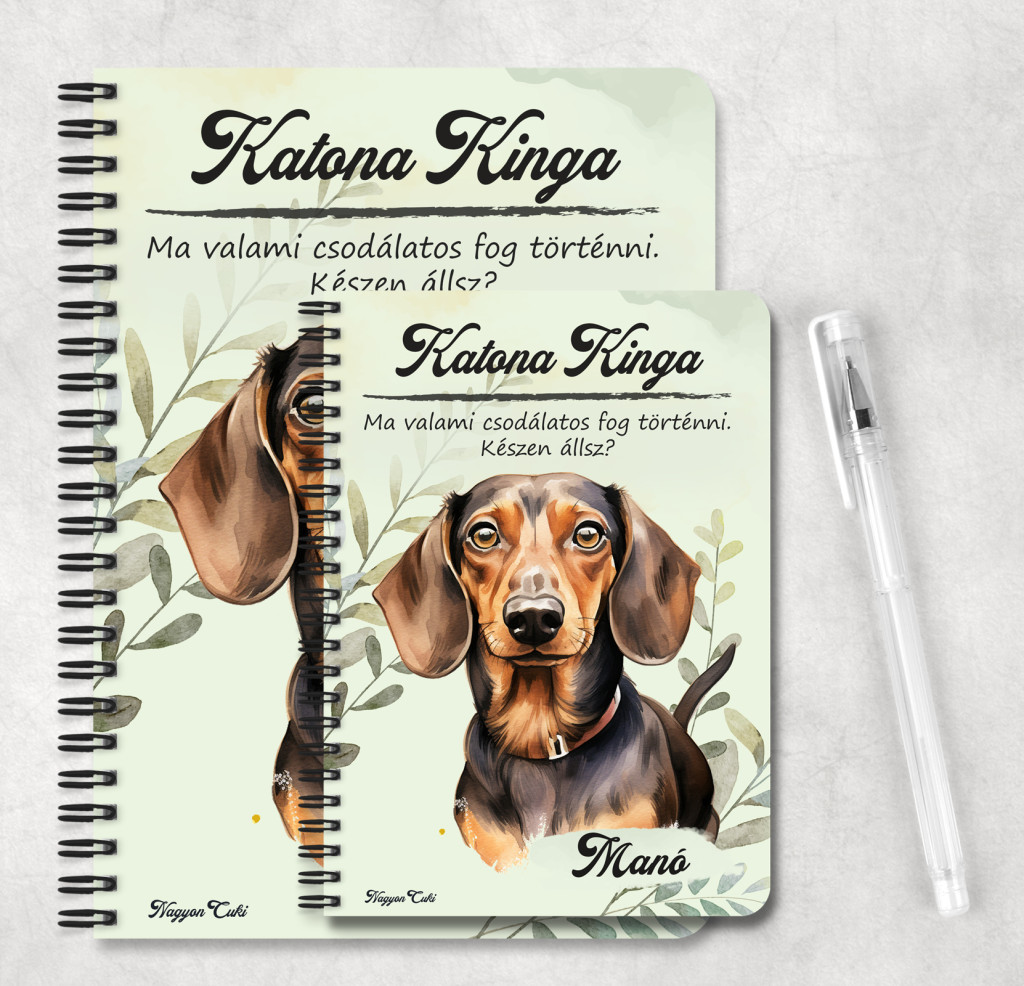 Rendeld meg most ezt a teljesen személyre szabható, egyedi kutyás füzetet, és hordozd magadnál büszkén a négylábú barátod portréját.