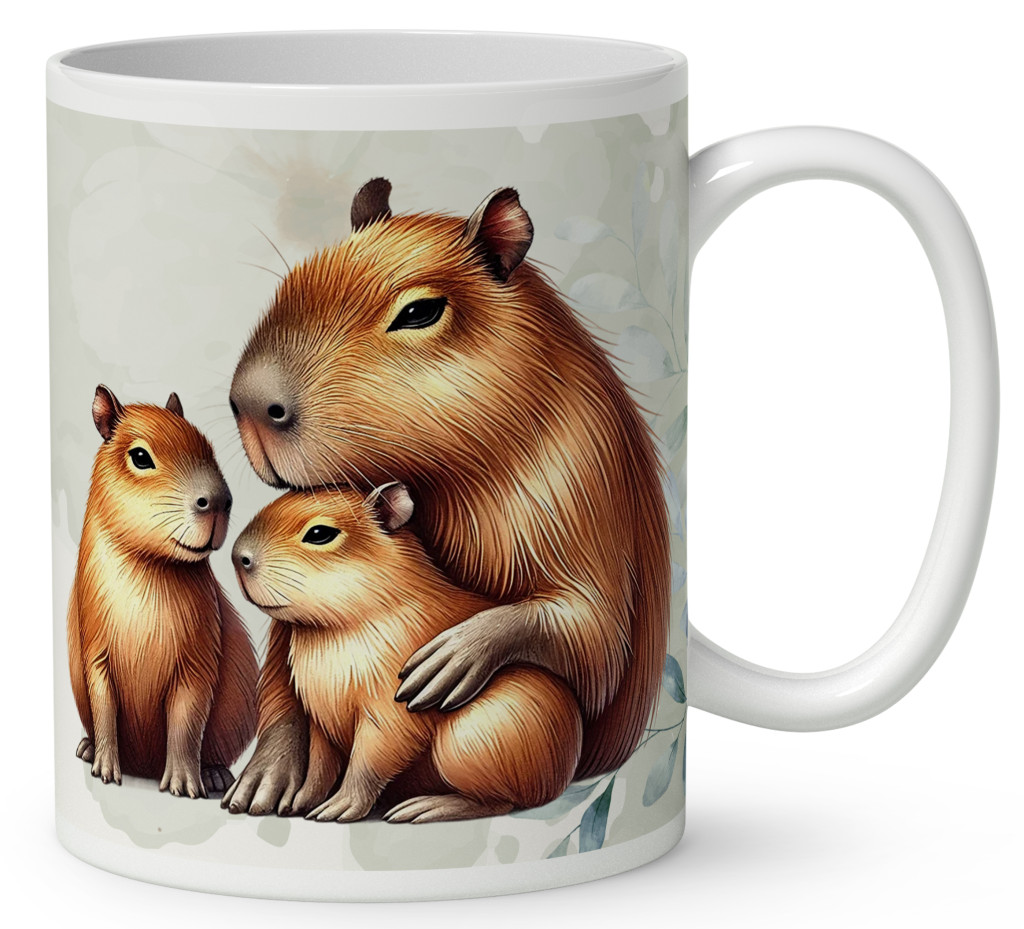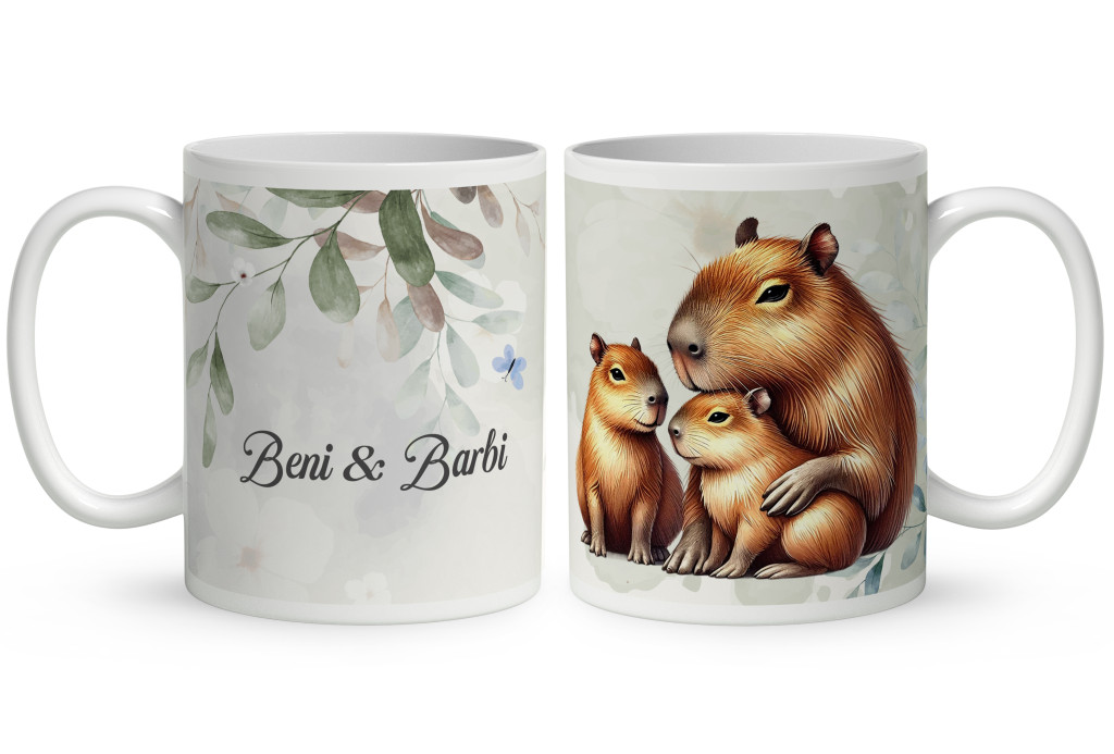 Névvel kérhető - Capybara és a kölykök mintás bögre | Ajándék ötlet Kapibara rajongóknak | nagyoncuki.hu