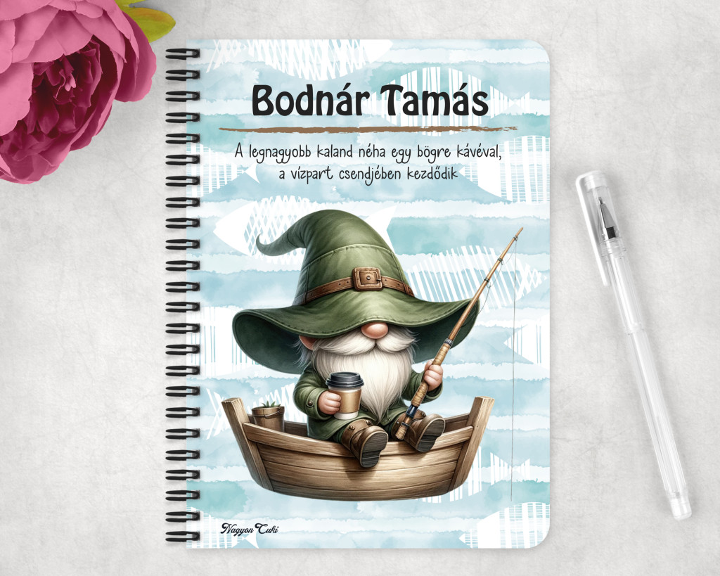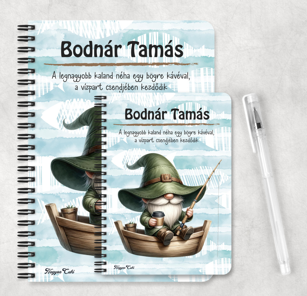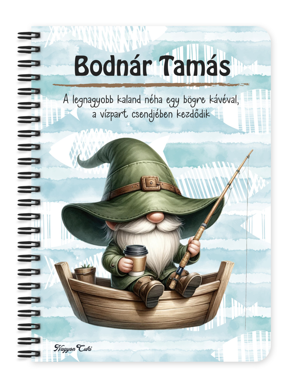 Névvel & Idézettel Kérhető Csónakos horgász manó és kávé mintás Füzet | Legjobb ajándék Horgászoknak | nagyoncuki.hu