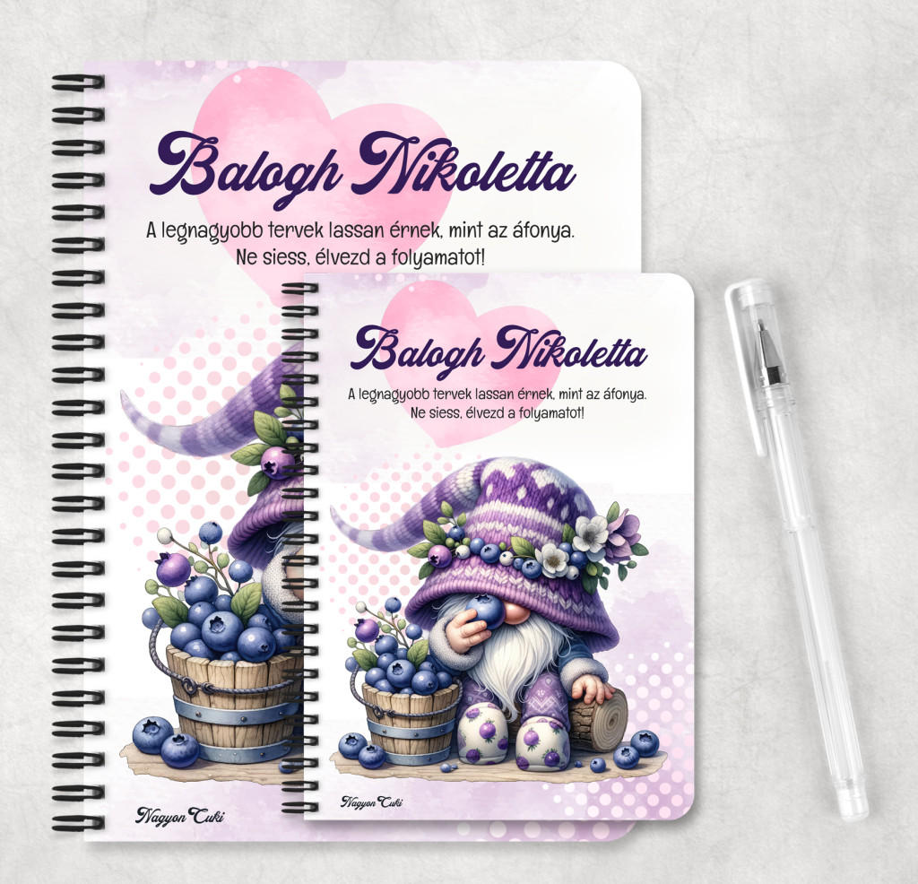 Kinek ideális ajándék ez a cuki áfonyás manó mintás füzet?