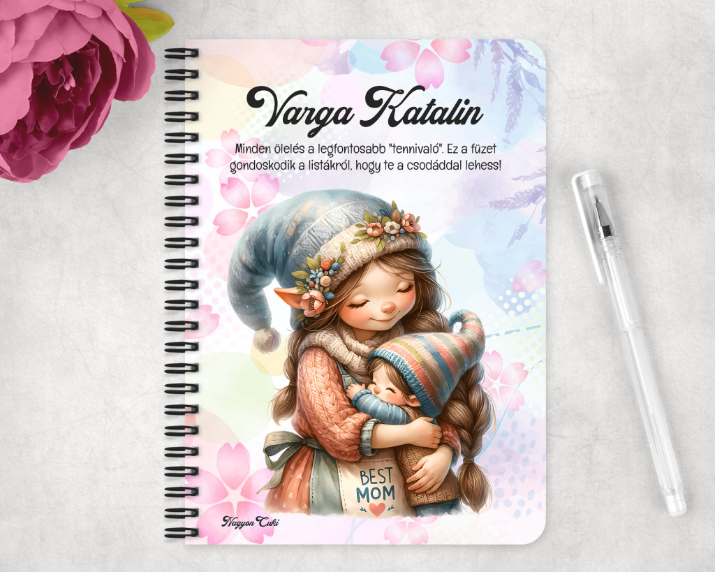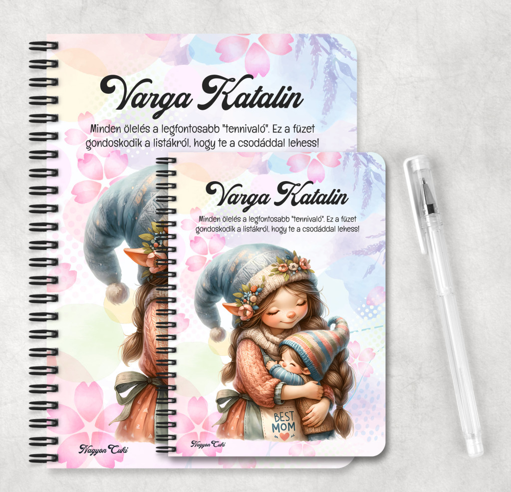 Névvel & Idézettel Kérhető Cuki Anya manó & Kisfia mintás Füzet | Névre Szóló Ajándék Anyáknak & Személyes Jegyzetfüzet | nagyoncuki.hu