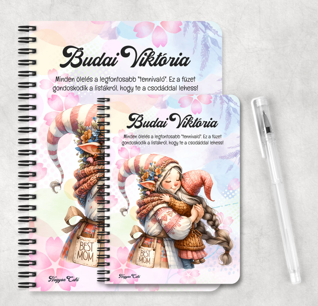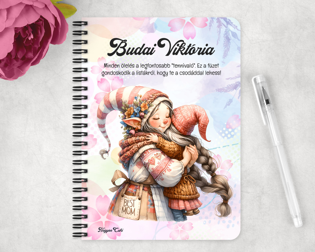 Névvel & Idézettel Kérhető Cuki Anya manó és manócskája mintás Füzet | Névre Szóló Ajándék Anyáknak & Személyes Jegyzetfüzet | nagyoncuki.hu