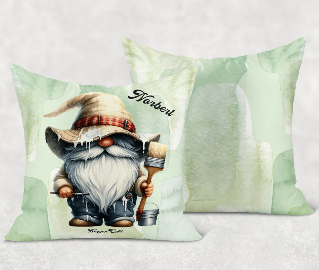 Névvel kérhető - Cuki Festő Ezermester manó mintás különleges és egyedi párna | Névre Szóló Ajándék Festőknek, Mázolóknak | nagyoncuki.hu