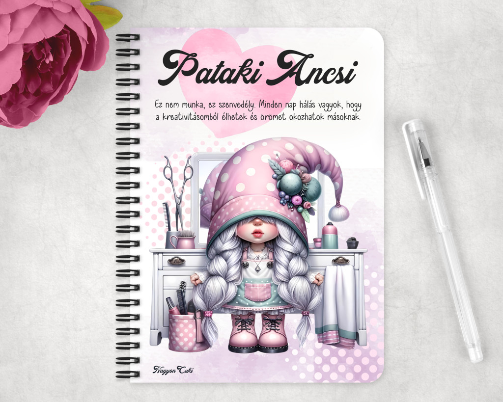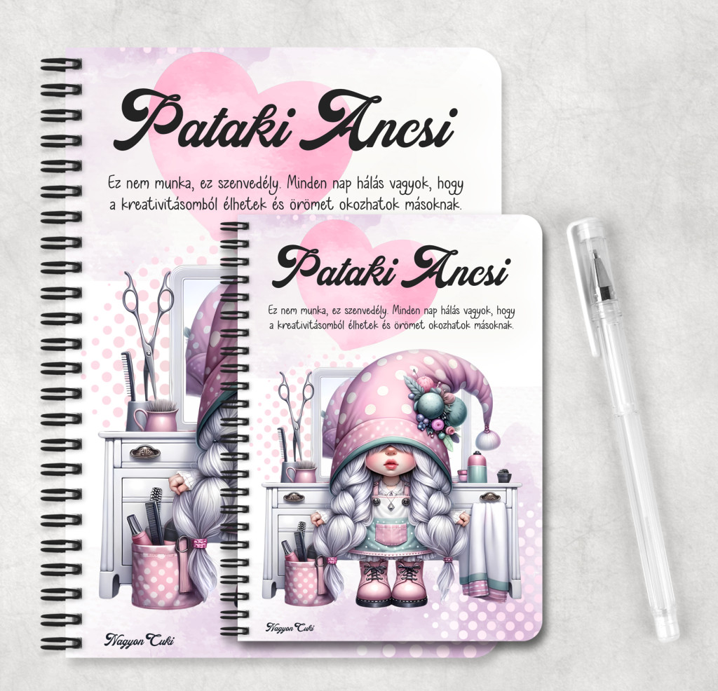 Személyre szabható - Fodrász manólány az asztalnál mintás A6-os füzet