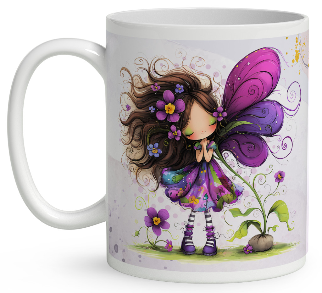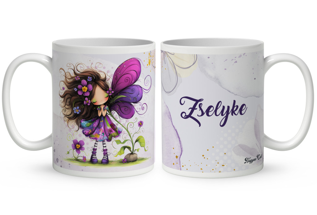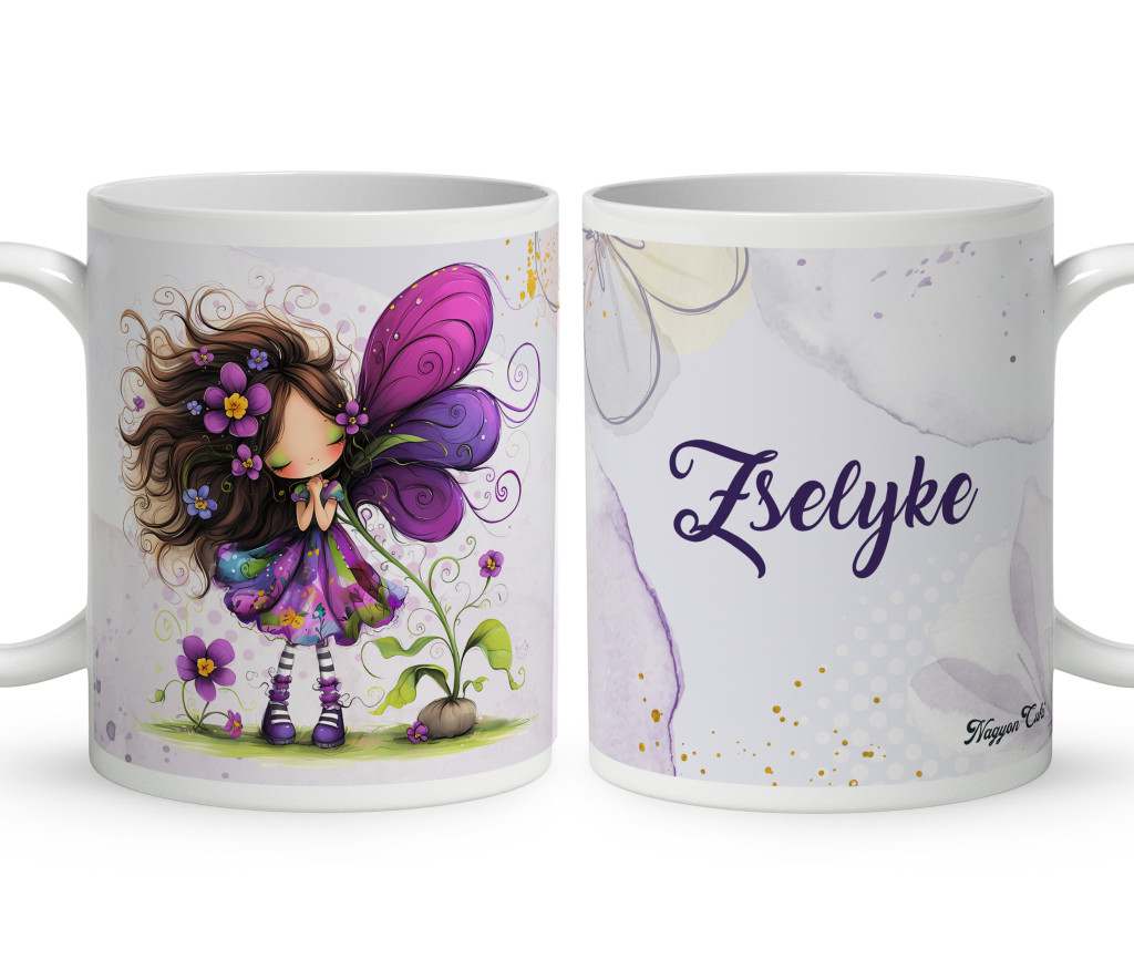 Névvel kérhető - Cuki ibolya virágos tündér mintás Bögre | Egyedi Ajándék Lányoknak és Nőknek | nagyoncuki.hu