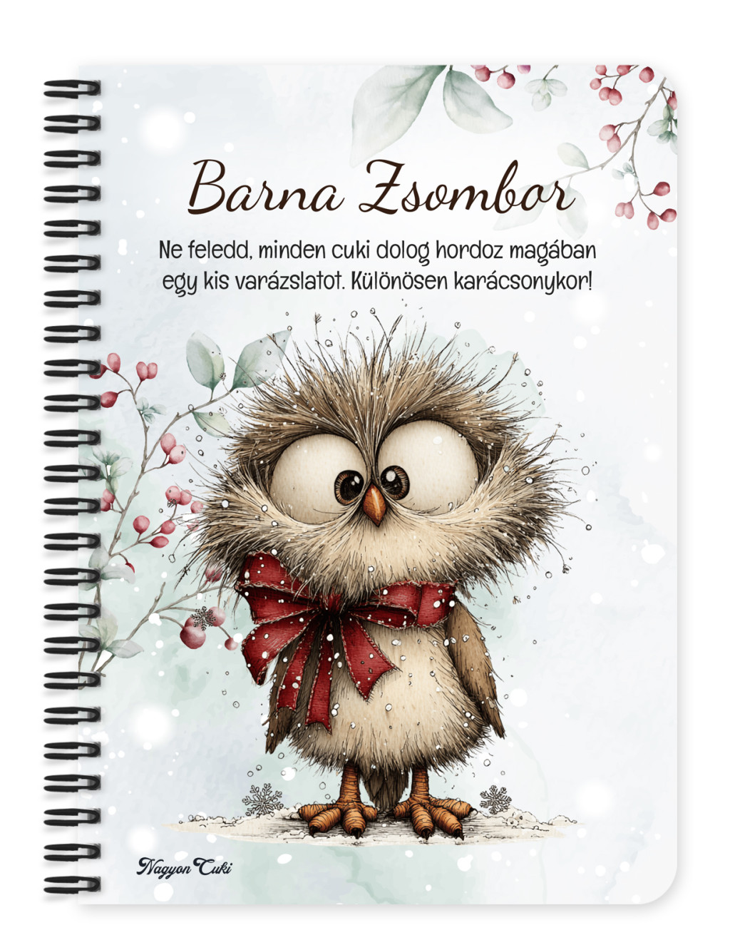Képzeld el azt a mosolyt és az ünnepi ihletet, amikor egy olyan füzetet tartasz a kezedben, amely nemcsak a teendőid és jegyzeteid rendszerezésére szolgál, hanem az ünnepi készülődés örömét is tükrözi! Ez a különleges, névre szóló, egyedi tervezésű Cuki téli bagoly füzet a meghitt kuckózás, a kreativitás és az Erdei Varázs kollekció elragadó ünnepi darabja. Egy apró, szeretetteljes gesztus, amely a tervezést, a munkát és a jegyzetelést is fénnyel tölti meg, inspirációt adva minden sorhoz. Kiváló ajándék ötlet karácsonyra – legyen szó nőről, férfiról, vagy gyermekről – aki értékeli a személyes és lélekemelő meglepetéseket!