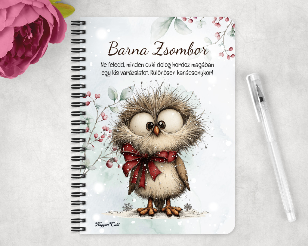 Névvel & Idézettel Kérhető Cuki téli bagoly masnival Füzet / Napló | Névre Szóló téli Ajándék & Személyes Jegyzetfüzet | nagyoncuki.hu