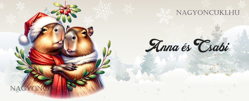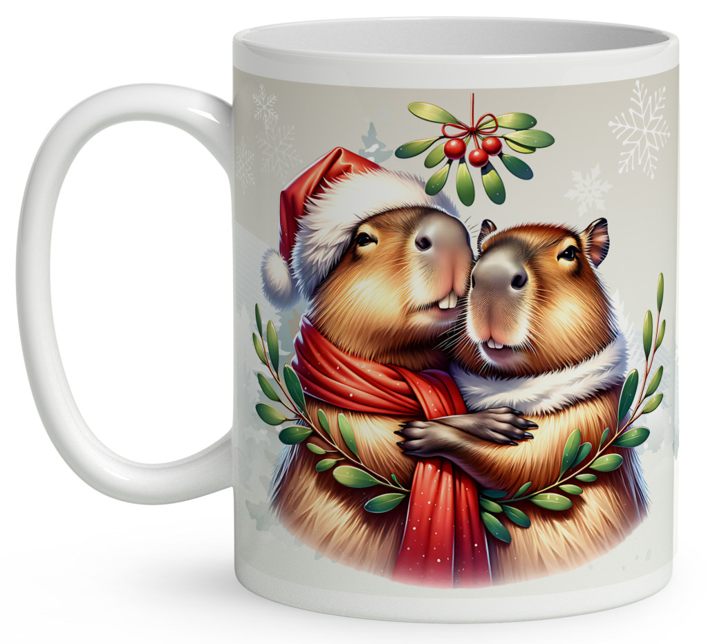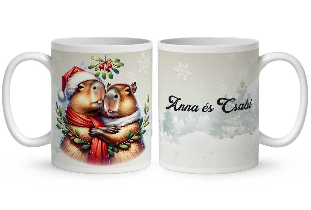 Névvel kérhető - Cuki Karácsonyi capybara pár mintás bögre | Ajándék ötlet Kapibara rajongóknak | nagyoncuki.hu