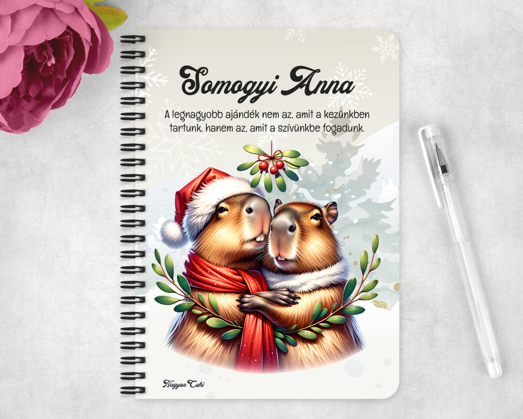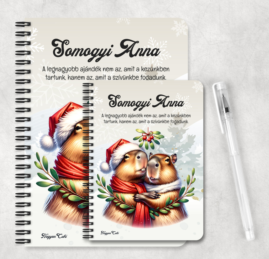 Névvel & Idézettel Kérhető Cuki Karácsonyi capybara pár Füzet | Legjobb ajándék ötlet Kapibara rajongóknak - Jegyzetfüzet és Napló | nagyoncuki.hu