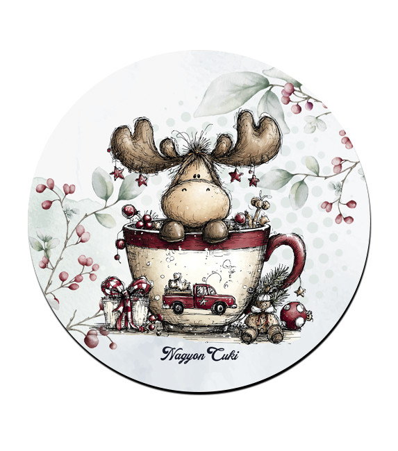 Cuki téli jávorszarvas Poháralátét | Egyedi Ajándék & téli Dekor| nagyoncuki.hu