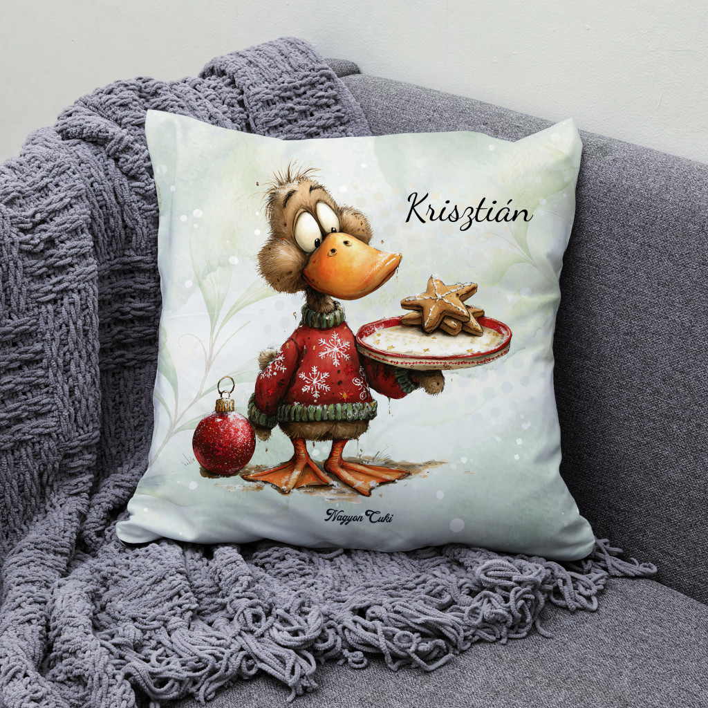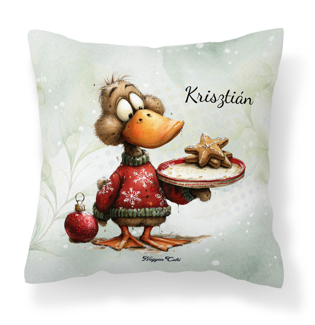 Névvel kérhető - Cuki karácsonyi kacsa sütivel mintás különleges és egyedi párna | Névre Szóló Karácsonyi Ajándék & Téli otthon dekor | nagyoncuki.hu