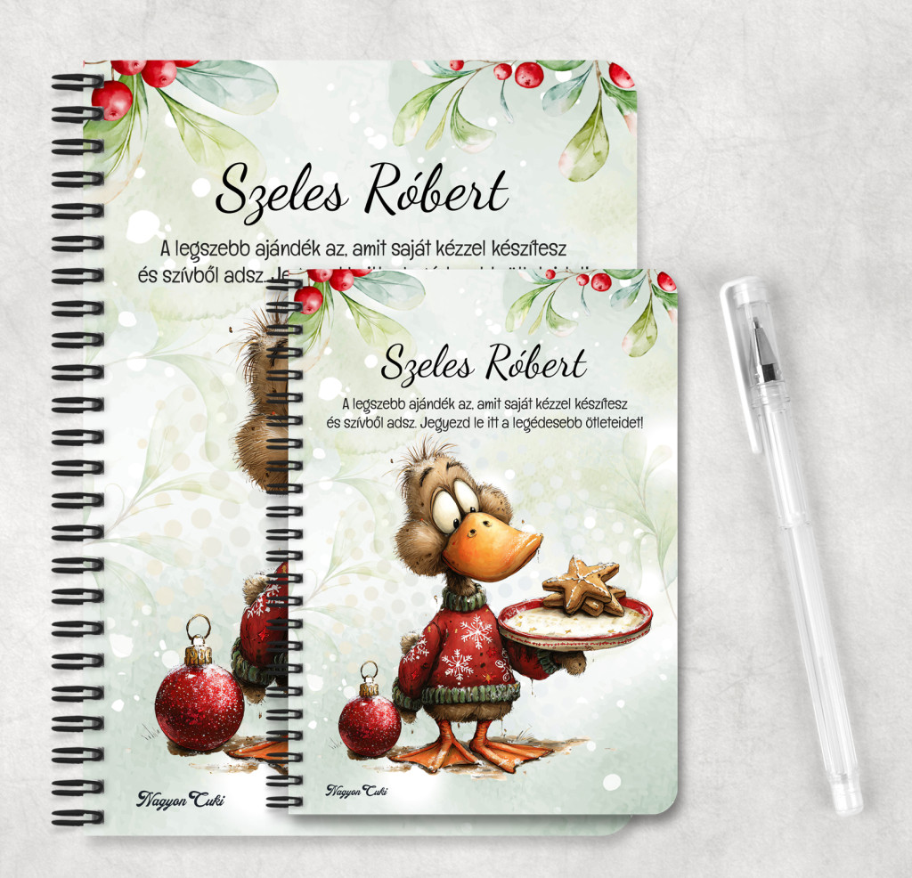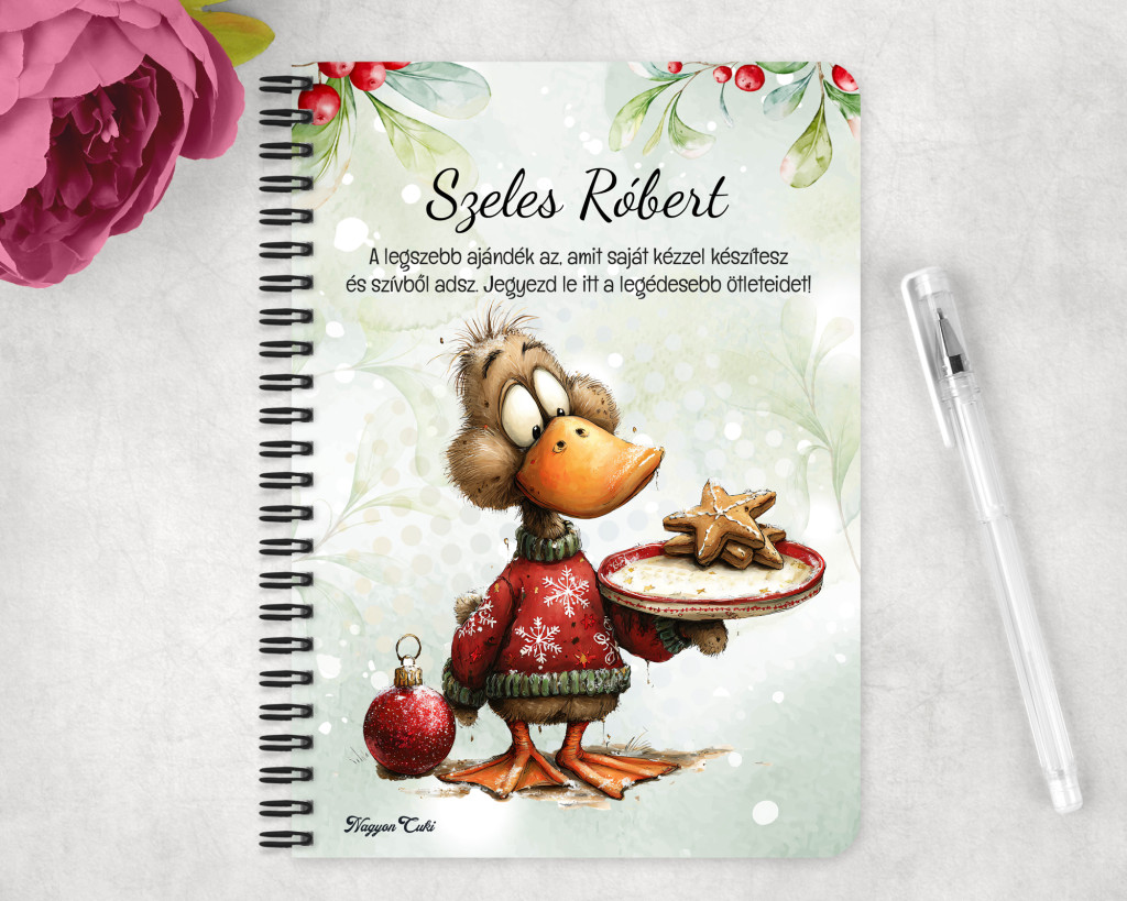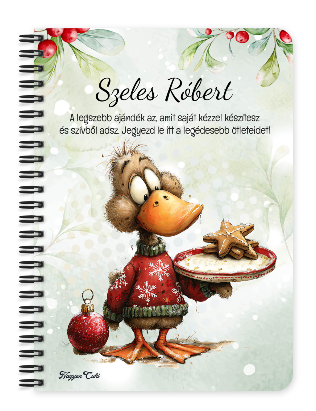Névvel & Idézettel Kérhető Cuki karácsonyi kacsa sütivel mintás  Füzet / Napló | Névre Szóló Karácsonyi Ajándék & Személyes Jegyzetfüzet | nagyoncuki.hu