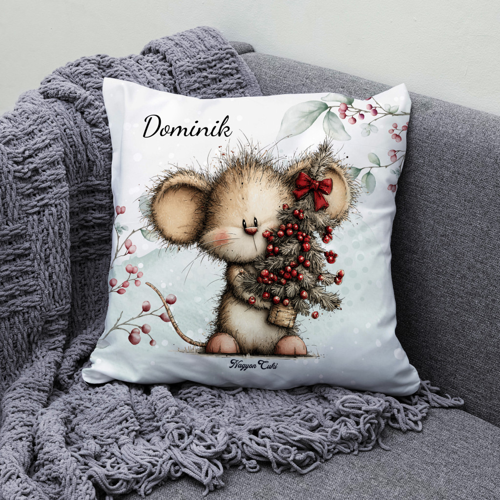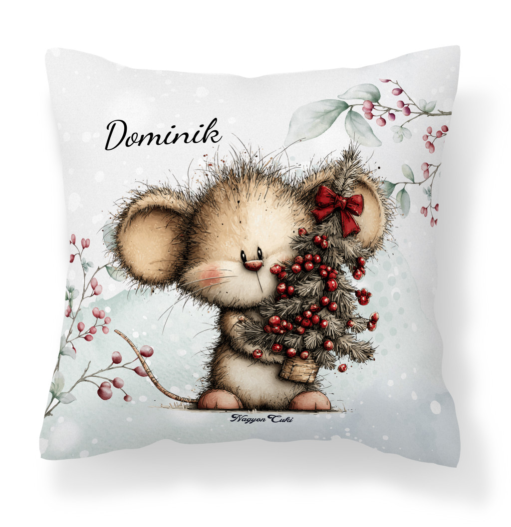 Névvel kérhető - Cuki Karácsonyi Kisegér mintás különleges és egyedi párna | Névre Szóló Karácsonyi Ajándék & Téli otthon dekor | nagyoncuki.hu